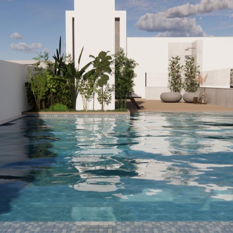 Alle Wohnungen haben Zugang zum privaten Pool auf der Sonnenterrasse.