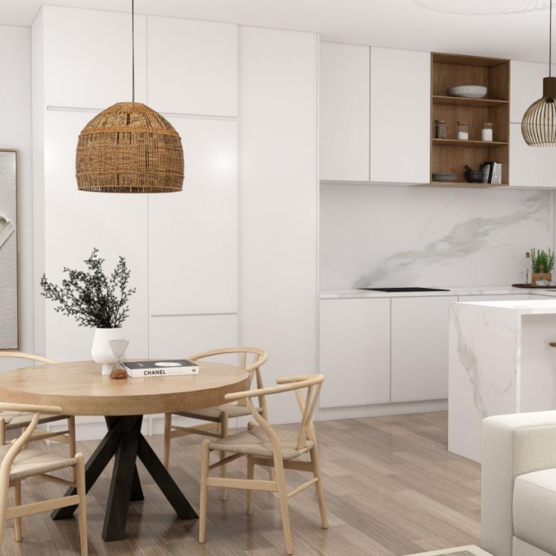 Moderne Wohnungen mit 2 Schlafzimmern und Penthouse mit 3 Schlafzimmern, alle mit 2 Bädern, Wohnzimmer Küche im modernen Stil, Schlafzimmer mit viel natürlichem Licht.