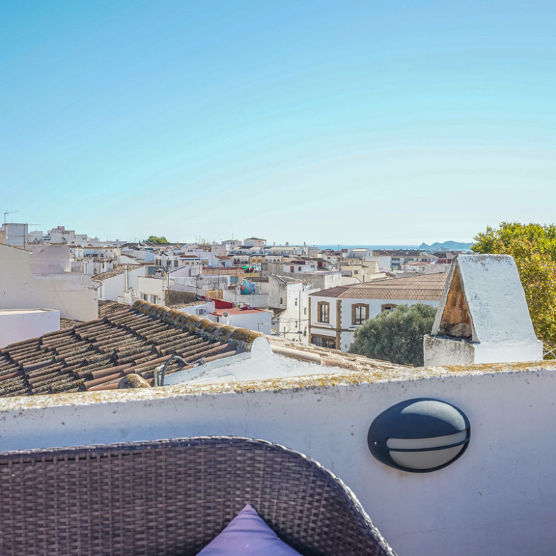 Dieses Reihenhaus liegt am Rande des historischen Zentrums von Jávea, das sein mittelalterliches Flair bis heute bewahrt hat. Das macht es zu einem einzigartigen Netz von engen Gassen mit südländisch anmutenden weißen Fassaden und Blumendekorationen, durch die Sie schlendern können. Hier finden Sie auch viele gemütliche Restaurants und urige Geschäfte. Alle Annehmlichkeiten wie Supermärkte, ein medizinisches Zentrum, Schulen, Restaurants usw. sind ebenfalls zu Fuß zu erreichen. Das Haus besteht aus 4 Etagen. Das Erdgeschoss ist als Geschäftsbüro eingerichtet und verfügt über einen separaten Eingang. Die erste Etage besteht aus einem großen Wohn-Esszimmer mit Balkon, einer Küche, zwei Doppelschlafzimmern, eines davon mit eigenem Bad und einem separaten Bad. Es gibt auch eine überdachte Terrasse für gemütliche Mahlzeiten im Freien. In der zweiten Etage finden wir die gleiche Aufteilung wieder. Hier gibt es ein zweites Wohn-Esszimmer, eine Küche, zwei Doppelschlafzimmer, eines mit eigenem Bad und ein separates Bad. Die dritte Etage besteht aus einem großen Raum, der als 5. Schlafzimmer, Büro, Yogastudio, Fitnessraum, etc. genutzt werden könnte. Auch hier gibt es ein separates Badezimmer mit Toilette und Dusche. Von der dritten Etage aus gelangen Sie auf die geräumige Dachterrasse, die einen wunderschönen Blick auf den Montgó, das historische Zentrum von Jávea und das Meer bietet. Auch von allen Schlafzimmern aus haben Sie einen Blick auf den Montgó. Außerdem müssen Sie nie einen Parkplatz im Stadtzentrum suchen, denn das Anwesen verfügt über eine große Garage, in die bis zu 4 Autos passen. Die Immobilie verfügt über einen separaten Strom- und Wasseranschluss für jede Etage, so dass es möglich ist, die Zimmer in 2 unabhängige Wohnungen aufzuteilen.