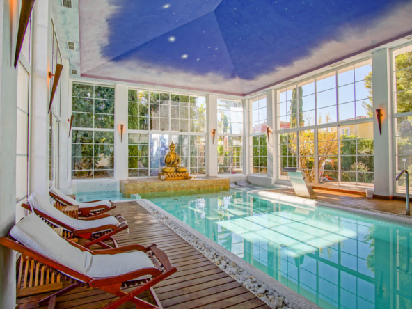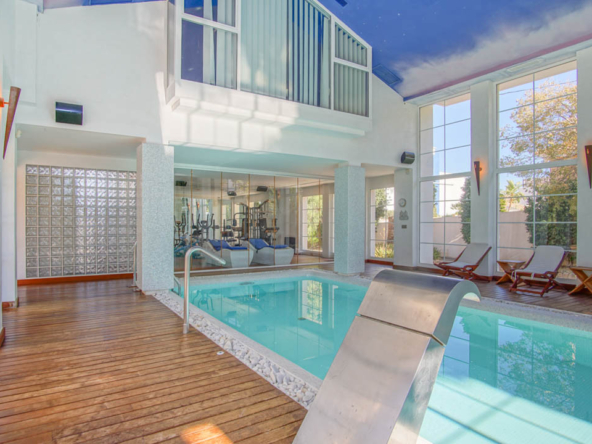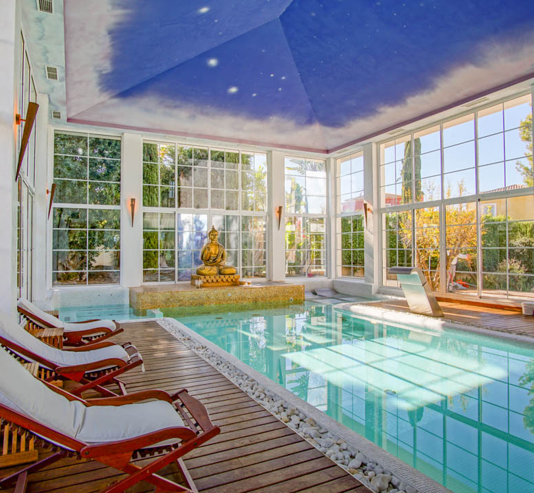 Diese schöne SPA-Villa befindet sich im Zentrum von Albir, nur wenige Gehminuten von gemütlichen Terrassen, Restaurants, Geschäften und der schönen Strandpromenade entfernt. Die Villa wurde als privates Spa und Gästehaus der Nachbarvilla genutzt. Im Erdgeschoss befindet sich ein komplettes Wellness-Spa mit integriertem Fitnessraum, einem beheizten Innenpool mit Jacuzzi, einem Raum mit großen Schiebetüren, in dem man eine offene Küche mit Wohnraum einrichten kann, und einer Treppenhalle. Im Untergeschoss gibt es weitere Wellnessbereiche mit verschiedenen Massageliegen, türkischen Bädern, Vichy-Dusche, 2 Themenduschen, Jet-Dusche, Sauna, Frigidarium und einem geschlossenen Innenhof mit Terrasse. Wenn Sie diesen voll ausgestatteten Wellnessbereich nicht weiter nutzen möchten, kann dieser Bereich problemlos in 2 zusätzliche Schlafzimmer mit eigenem Bad umgewandelt werden. Im Obergeschoss befinden sich 3 Schlafzimmer mit eigenem Bad und Terrasse. Es gibt einen vorläufigen Entwurf auf dem Plan, um diese Villa bei Bedarf in eine Luxusvilla mit 5 Schlafzimmern und einem Außenpool umzuwandeln, indem das Dach vom Innenpool entfernt wird. Dies kann mit dem Architekten, der den Vorentwurf gezeichnet hat, besprochen werden. Sie können auch einen anderen Architekten engagieren, wenn Sie dies wünschen. Eine Luxusvilla mit viel Potenzial! Für den richtigen Preis kann die Villa nebenan auch als eine Einheit gekauft werden. Bei einem separaten Verkauf wird eine Trennung zwischen den 2 Grundstücken vorgenommen und ein Eingang auf der Straßenseite der Spa-Villa geschaffen. Eine der letzten schönen Villen so nahe am Zentrum von ALbir. Vorläufige Pläne sind nach der Besichtigung verfügbar.