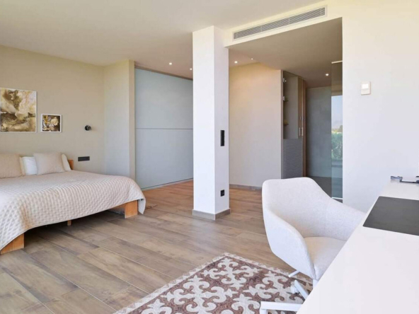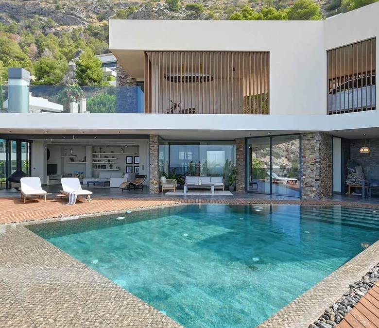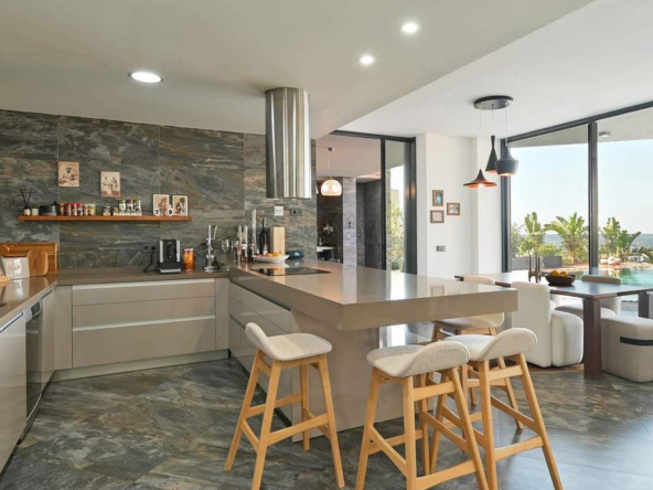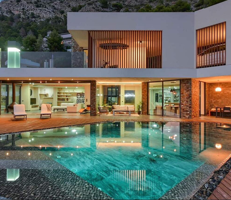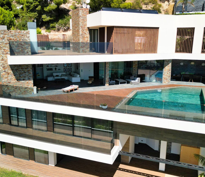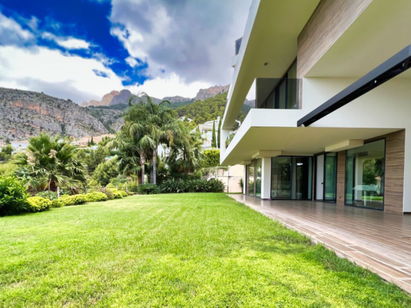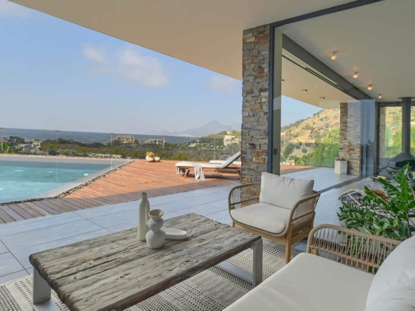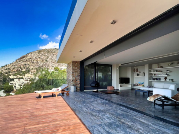 Wir präsentieren Ihnen eine anspruchsvolle, moderne Villa in der exklusiven Gemeinde Altea Hills, die rund um die Uhr bewacht wird, um die Sicherheit ihrer Bewohner zu gewährleisten. Diese elegante Immobilie zeichnet sich durch ihre geräumige Architektur und innovative Innenarchitektur aus, die eine Philosophie der offenen Räume, klaren Linien und Harmonie mit der Natur verfolgt.