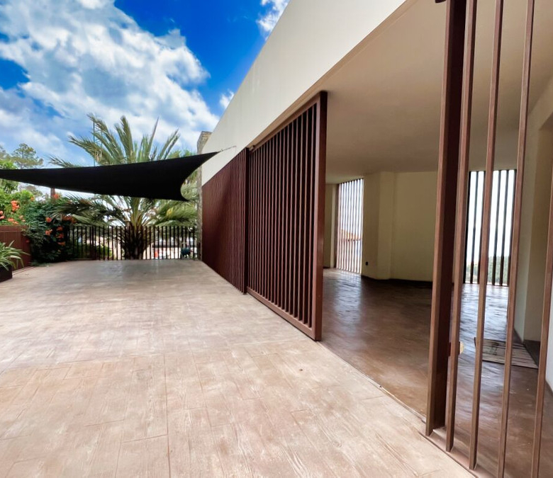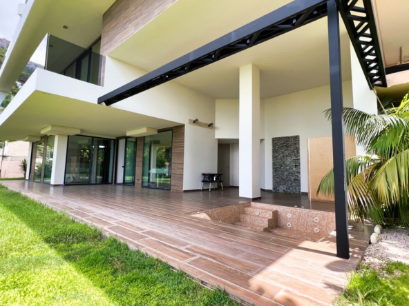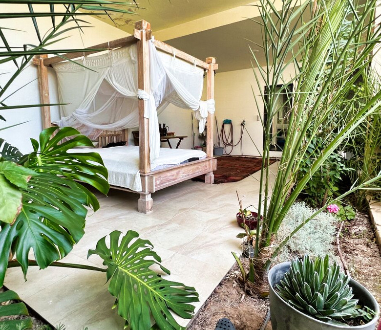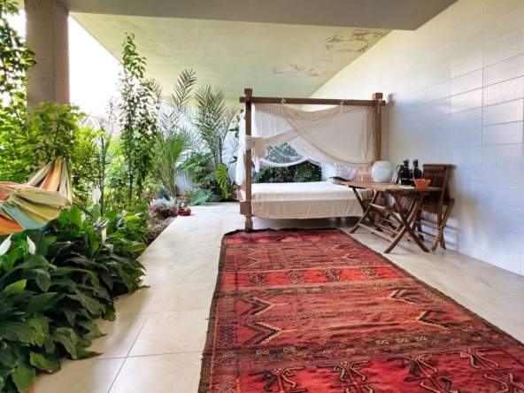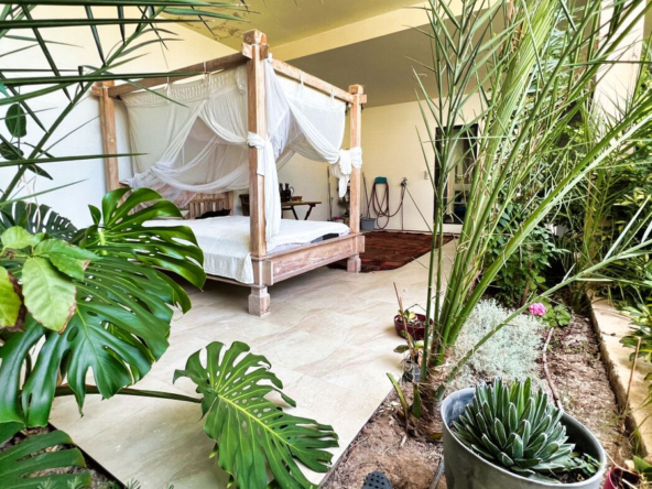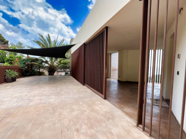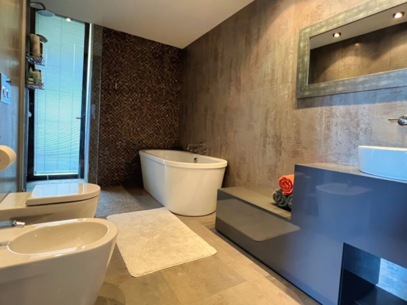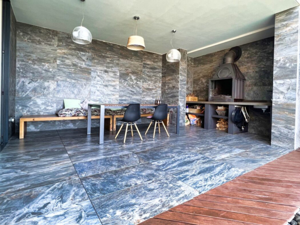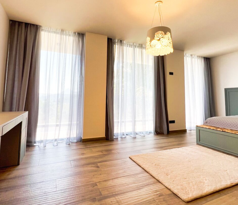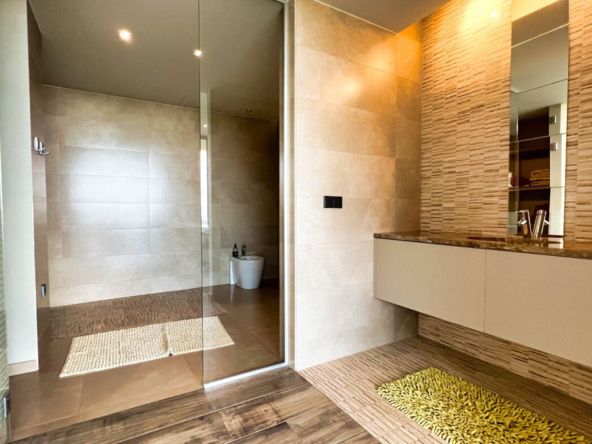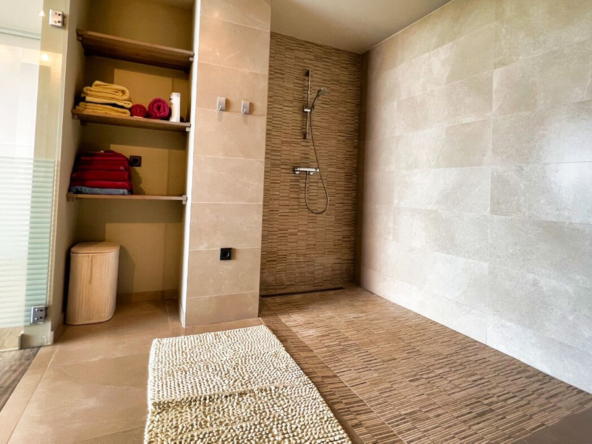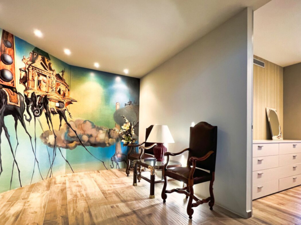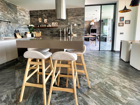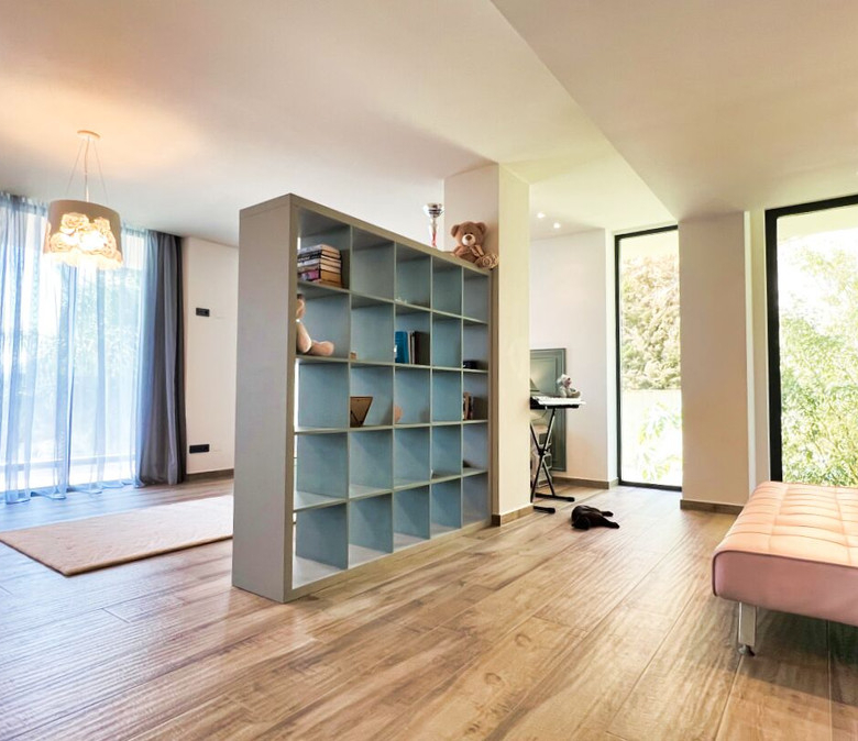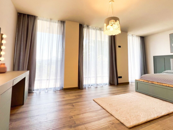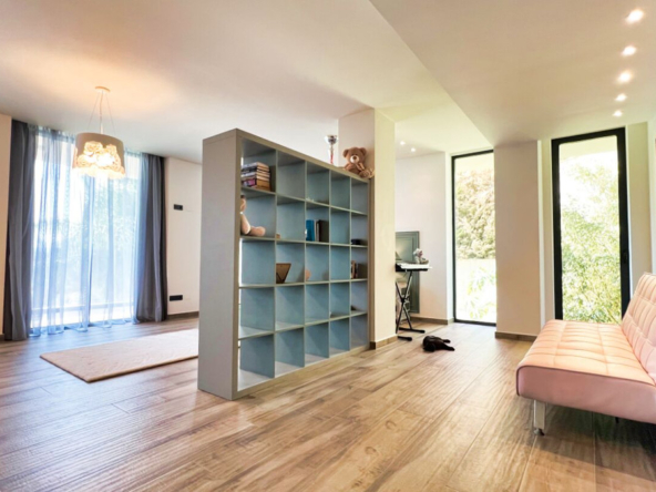 Außerdem gibt es ein zusätzliches halboffenes Schlafzimmer und weitläufige Grünflächen, die sich über die vier Ebenen des Anwesens verteilen und eine Atmosphäre der Ruhe und des Friedens schaffen.