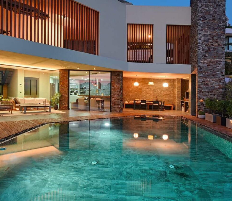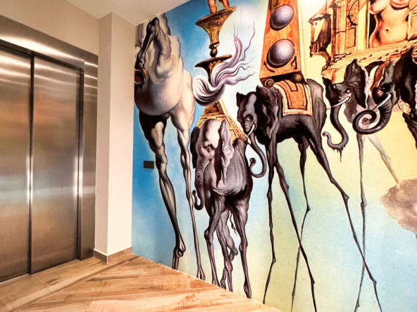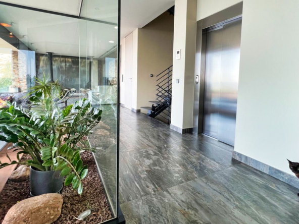 Die Immobilie verfügt über zahlreiche luxuriöse Annehmlichkeiten, darunter ein Aufzug, mit dem Sie jede Etage bequem erreichen können, ein großer Salzwasser-Swimmingpool für die Sommertage, ein zusätzlicher Raum mit Jacuzzi und Sauna für Ihre Entspannungsmomente, ein eleganter Jugendstilkamin für kühlere Abende und ein geräumiger Parkplatz für mehrere Fahrzeuge.