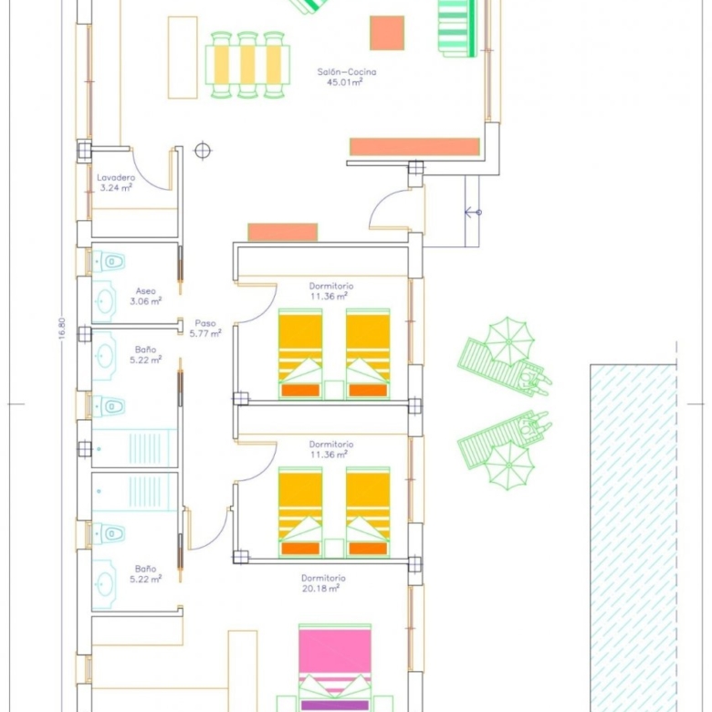 Die Villen sind auf einer Ebene mit Terrassen rund um sie entworfen und haben 3 Schlafzimmer, einschließlich Ankleidezimmer im Hauptschlafzimmer, 2 Bäder und eine Toilette.