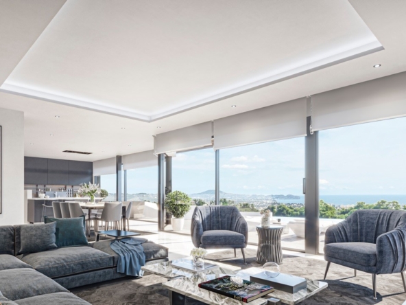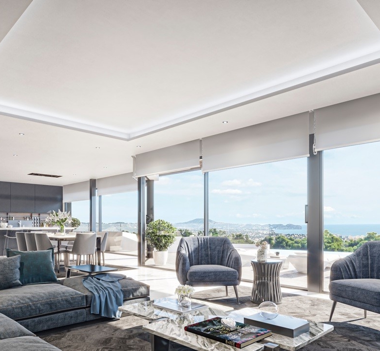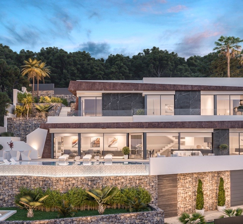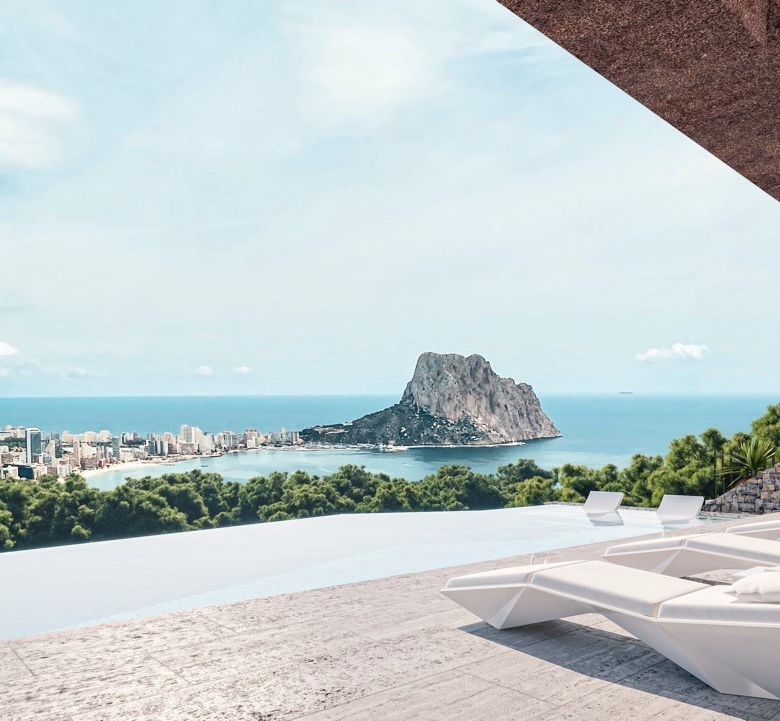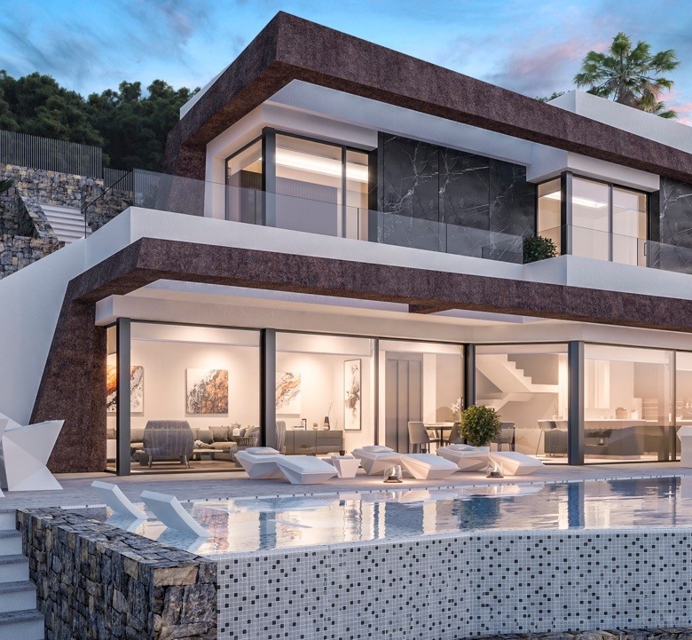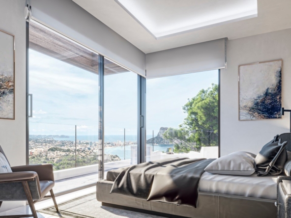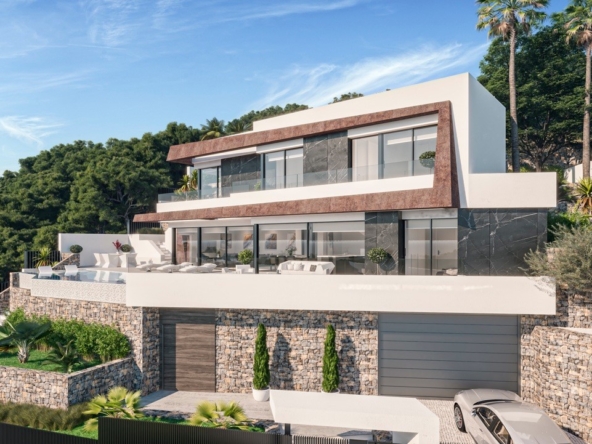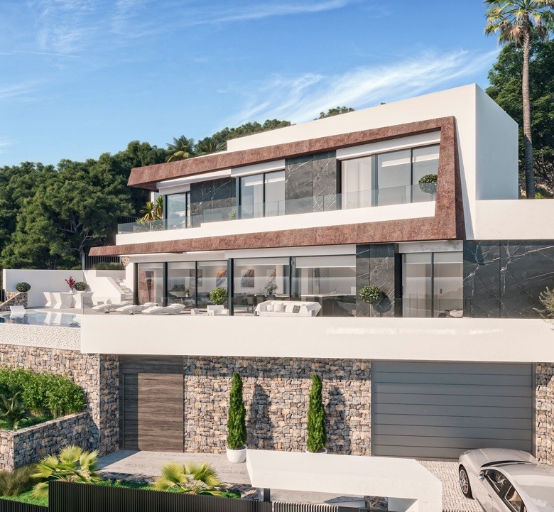 Neubau-Villa mit Meerblick zum Verkauf in Calpe, in der Urbanisation Maryvilla gelegen.