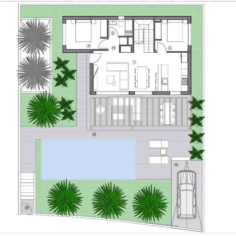 Die Villen wurden in einem modernen Stil entworfen, der das natürliche Licht und den Panoramablick optimal nutzt. Sie können zwischen verschiedenen Modellen mit 2 bis 4 Schlafzimmern wählen, und einige Modelle verfügen über ein Untergeschoss mit englischem Patio, das die Möglichkeit bietet, weitere Schlafzimmer hinzuzufügen.