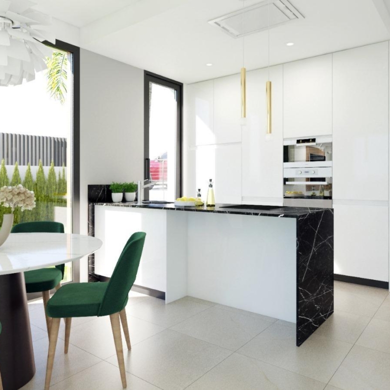 Alle Häuser werden über 3 geräumige Schlafzimmer und 3 elegante Badezimmer verfügen, um den Bewohnern Komfort und Privatsphäre zu bieten. Das geräumige Wohn-Esszimmer mit integrierter moderner Küche wird das Herzstück des Hauses sein, in dem Familie und Freunde zusammenkommen und unvergessliche Momente genießen können. Darüber hinaus wird das Haus mit einer Vorinstallation für eine Klimaanlage ausgestattet sein. Das Haus wird sich durch modernste Technologie auszeichnen, denn es wird dank eines fortschrittlichen Hausautomationssystems vollständig automatisiert sein. Von der Beleuchtungssteuerung bis zum Sicherheitsmanagement haben Sie alles im Griff.