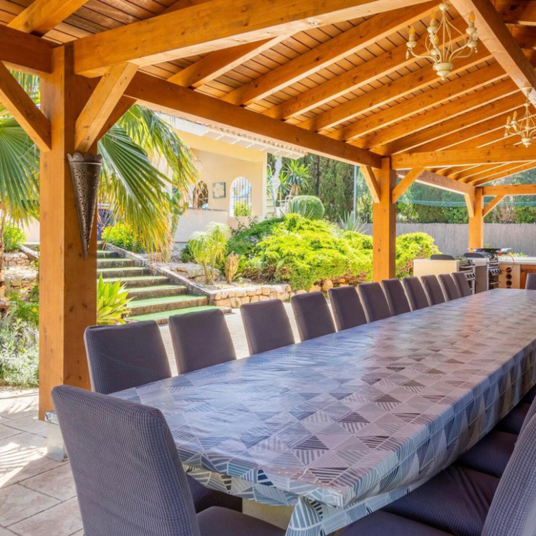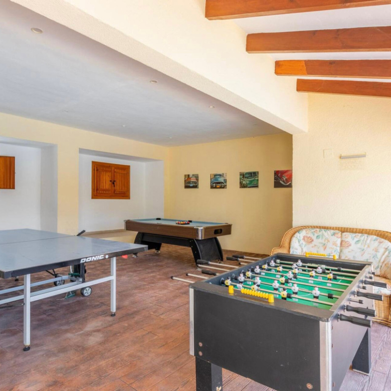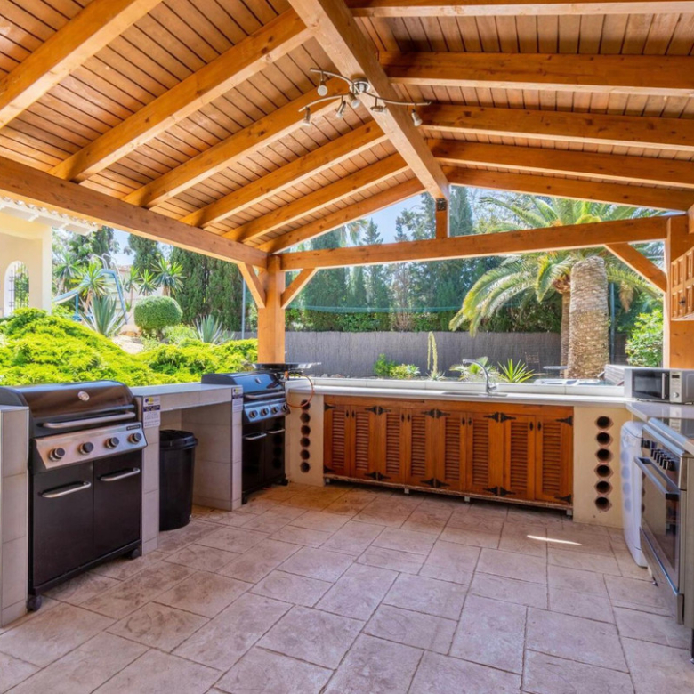 Es gibt insgesamt 10 Schlafzimmer und 7 Badezimmer in der Villa, sowie eine zusätzliche Toilette. Ein Spielzimmer, eine große, voll ausgestattete Sommerküche mit Backofen, Herd, zwei Gasgrills und einem großen Sitzbereich, ein Whirlpool, eine überdachte Poolbar und ein Kinderspielplatz runden das Anwesen ab.