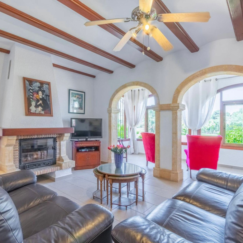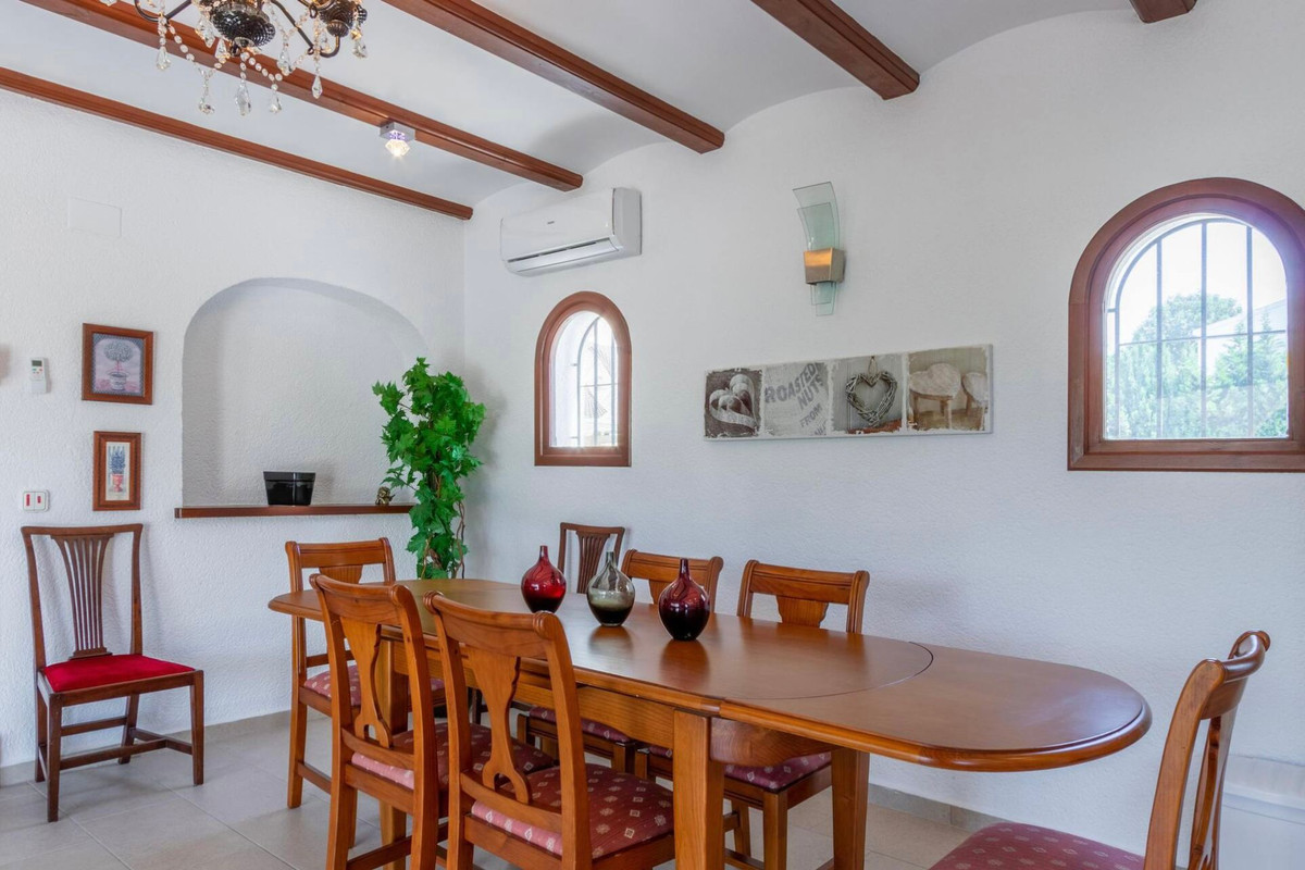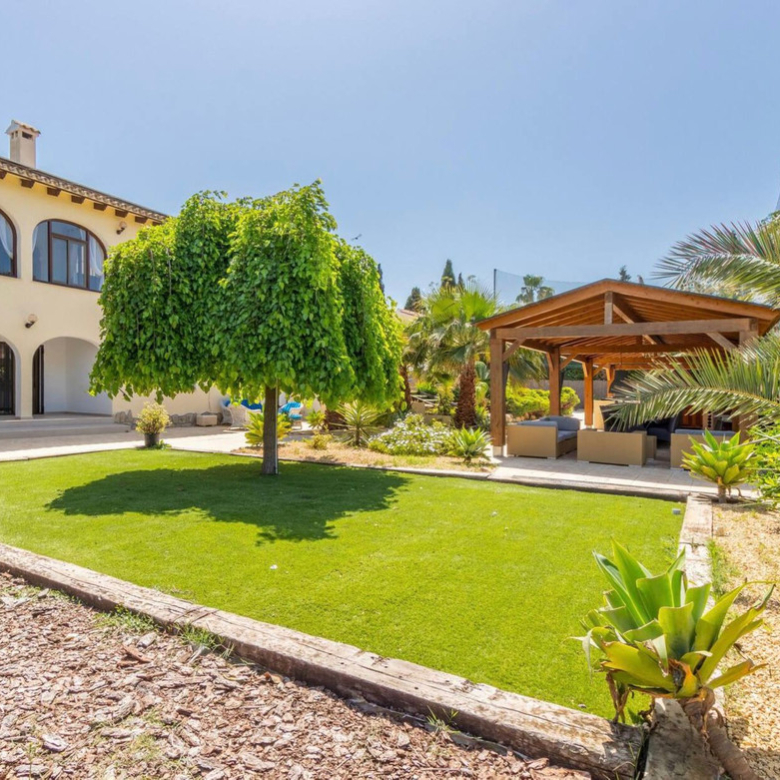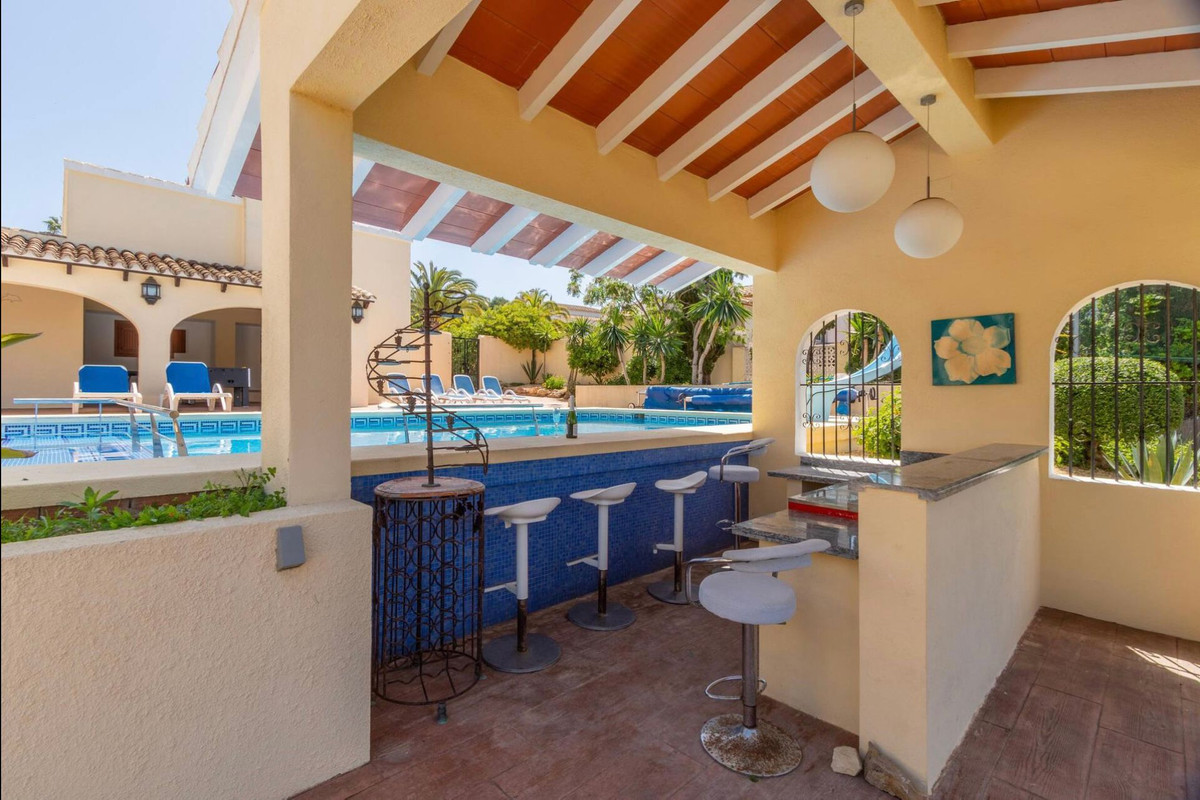 Große Familienvilla in der Gegend von Los Cerezos, Javea, nur wenige Gehminuten vom Golfplatz entfernt, nur eine kurze Fahrt von Javea oder Benitachell und eine 10-minütige Fahrt von Moraira oder dem Strand von Javea entfernt. Das Anwesen profitiert von offenem Blick und Bergblick und ganztägiger Sonne.