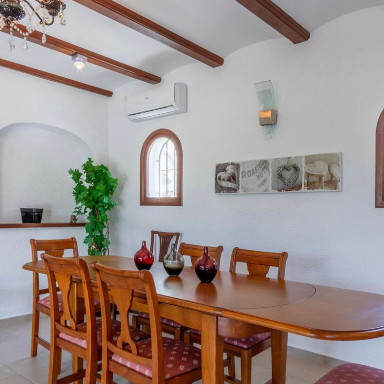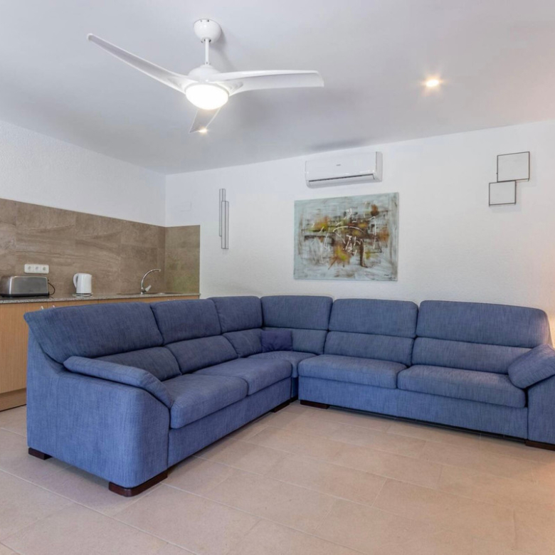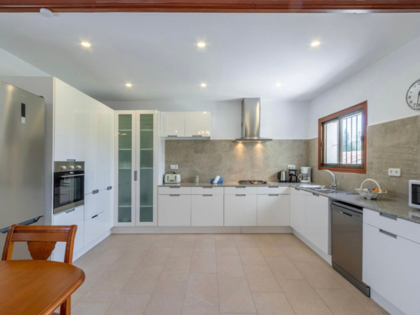 Diese 2-stöckige Villa besteht auf einer Etage aus einem großen Wohnzimmer mit angrenzendem Essbereich und einer offenen, großen, voll ausgestatteten Küche. In der unteren Etage, mit Gästeapartment, befindet sich ein großes offenes Wohn-/Esszimmer mit Küchenzeile.