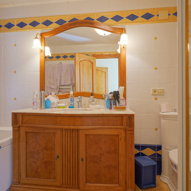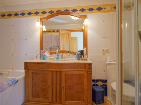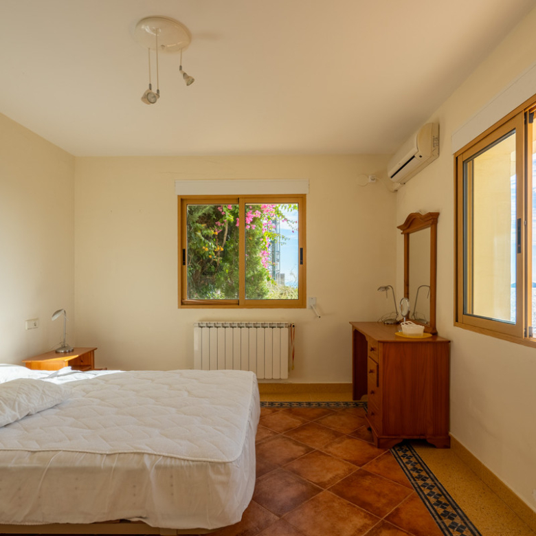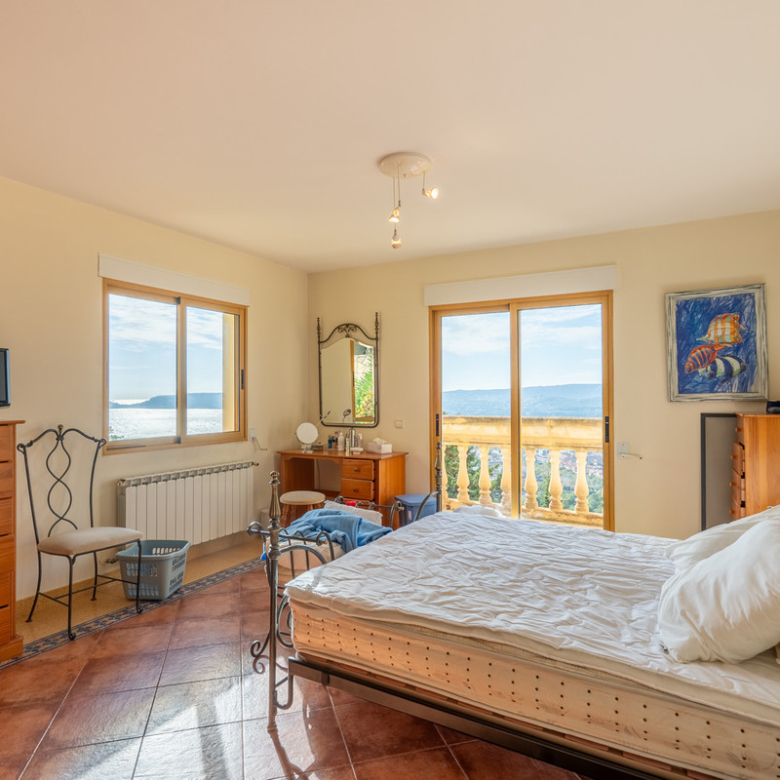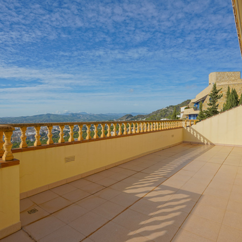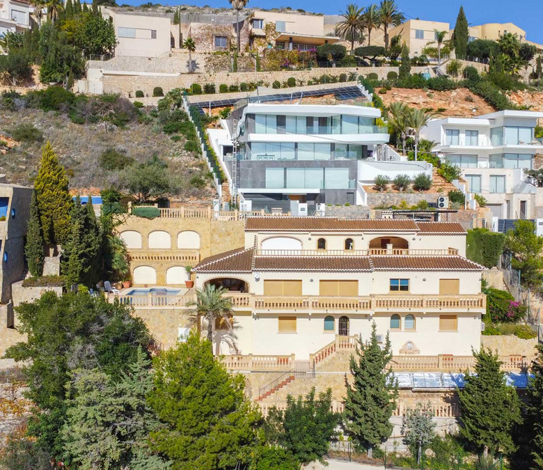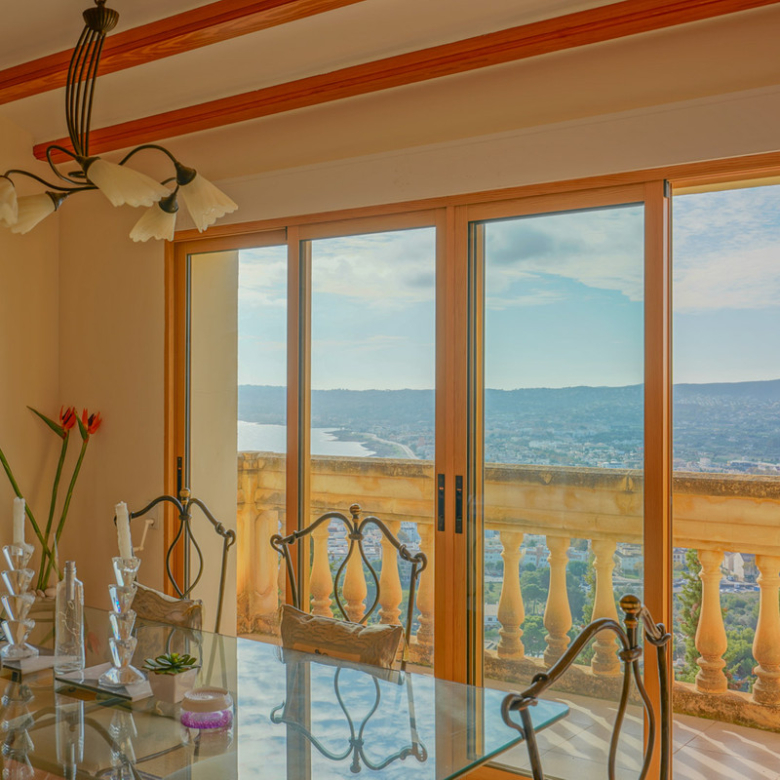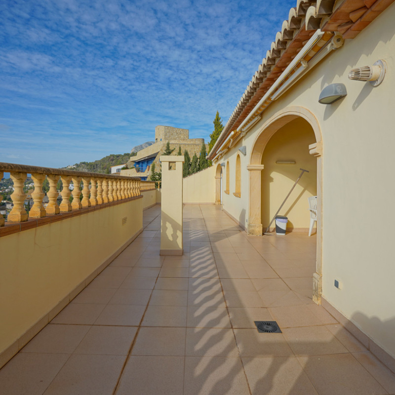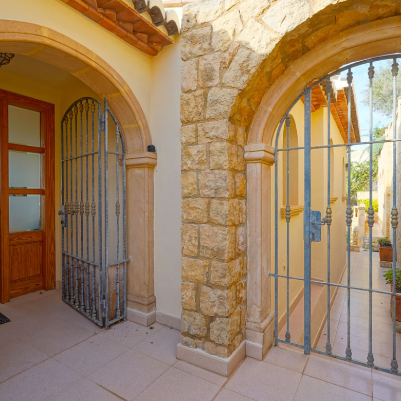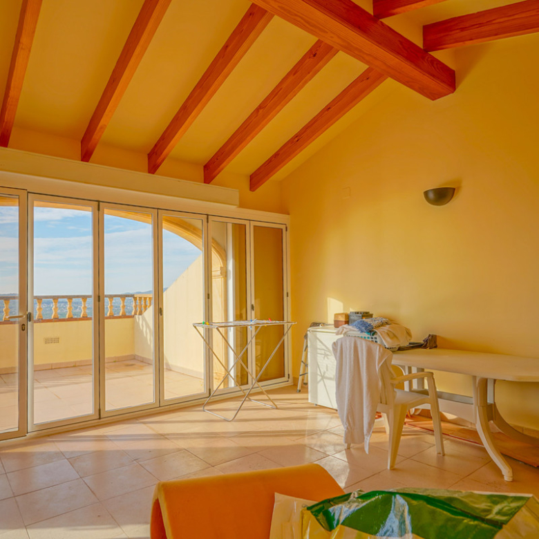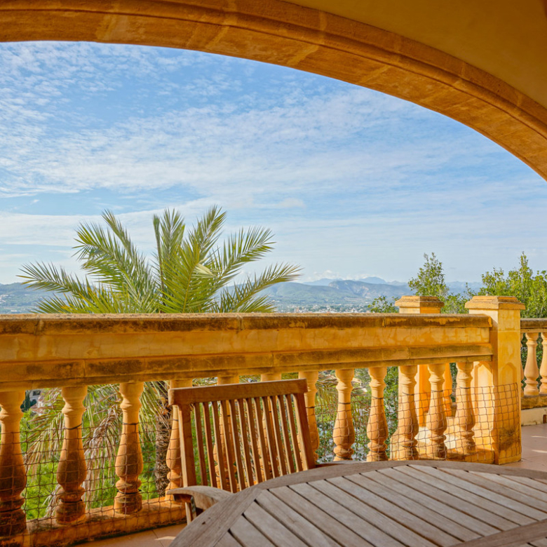 Diese traditionelle Villa befindet sich in der prestigeträchtigen Urbanisation La Corona in Javea und bietet einen atemberaubenden Blick über die azurblaue Bucht von Javea bis hin zum majestätischen Cap Negre. Genießen Sie nicht nur einen atemberaubenden Blick auf das Meer, sondern auch ein beeindruckendes Panorama auf die umliegende Berglandschaft. Dieser einzigartige 180°-Blick garantiert Ihnen jeden Morgen die schönsten Sonnenaufgänge auf der Ostseite und bezaubernde Sonnenuntergänge in den Bergen auf der Westseite. Die Villa ist elegant über drei Etagen verteilt, wobei der Pool perfekt auf dem Boden der Wohnräume liegt. In der Nähe der Straße finden Sie einen Carport und zusätzliche Parkplätze für zwei Fahrzeuge. Ein paar Stufen hinunter gelangen Sie durch den Haupteingang in die oberste Etage. Diese Etage führt zu einem großen Raum mit direktem Zugang zu einer großzügigen Terrasse mit einer überdachten Außenküche. Auf der mittleren Etage finden Sie das geräumige Wohn-Esszimmer mit einer gemütlichen Sitzecke und einem Kamin, eine moderne Küche mit Kochinsel, ein komfortables Schlafzimmer mit Doppelbett, ein stilvolles Badezimmer und ein Gäste-WC. Von jedem Zimmer – außer den Badezimmern – können Sie den wunderschönen Meerblick genießen. Das Wohnzimmer bietet Zugang zu einer großen überdachten Terrasse mit Blick auf den Pool und die schöne Landschaft. Im Erdgeschoss befinden sich das Hauptschlafzimmer mit eigenem Bad sowie zwei weitere Doppelschlafzimmer, die sich ein Bad teilen. Auch hier gibt es eine schöne Terrasse, auf der Sie sich entspannen und die Umgebung genießen können. Diese Villa kann bei Bedarf auch mit einem Renovierungsprojekt erworben werden. Sowohl der Hafen als auch das historische Zentrum von Javea sind in nur 5 Minuten zu erreichen, so dass Sie die ideale Kombination aus Ruhe und Zugang zu Kultur und Annehmlichkeiten haben. Kommen Sie und entdecken Sie Ihr Traumhaus in diesem Paradies an der Costa Blanca!
