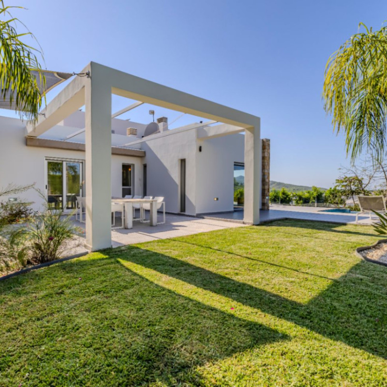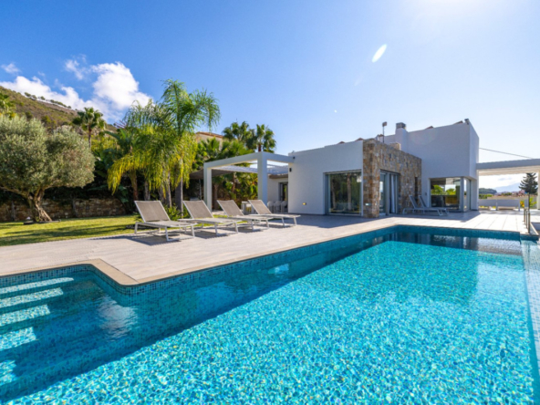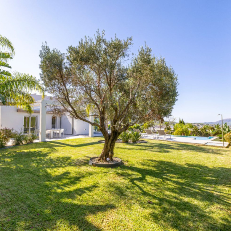 In der unteren Etage hat die Villa zwei weitere Schlafzimmer, ein Duschbad und ein Wohnzimmer, einen vielseitigen Raum, der ideal für größere Familien und Gäste ist. Darüber hinaus gibt es ein Arbeitszimmer, ein Kino und einen großen Hauswirtschaftsraum, zentrale Klimaanlage, Parkplätze für 2 Autos sowie offene und überdachte Terrassen.