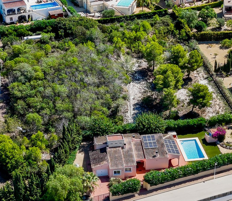 Seltene Gelegenheit in Jávea: Eine ebenerdige Villa (Baujahr 2008) zusammen mit einem angrenzenden Grundstück, ideal für den Bau einer zweiten Villa.