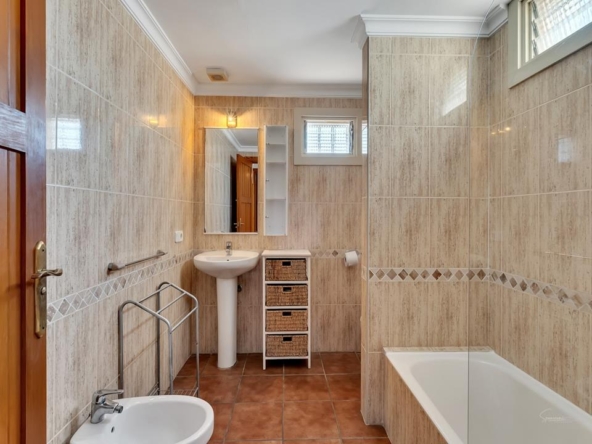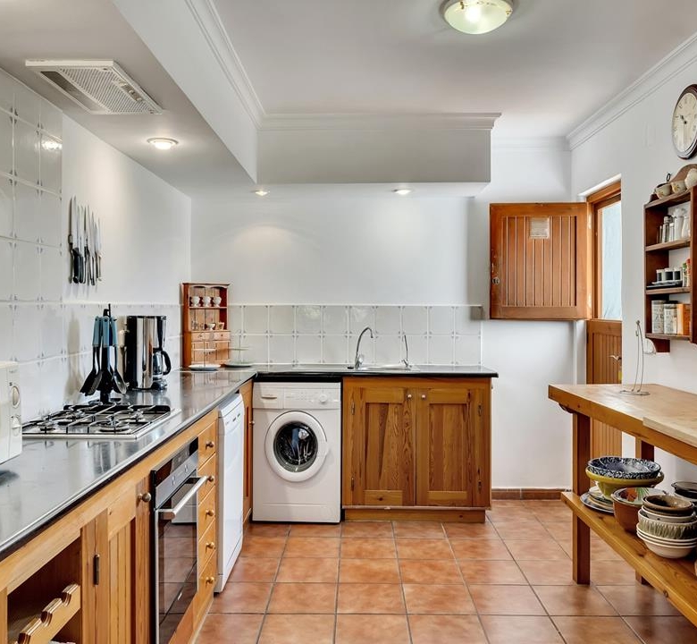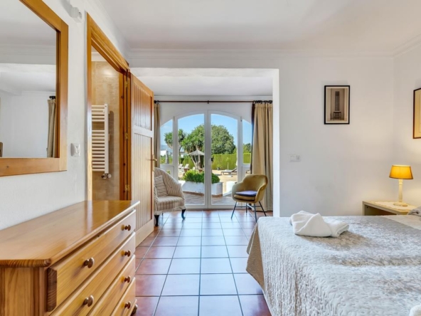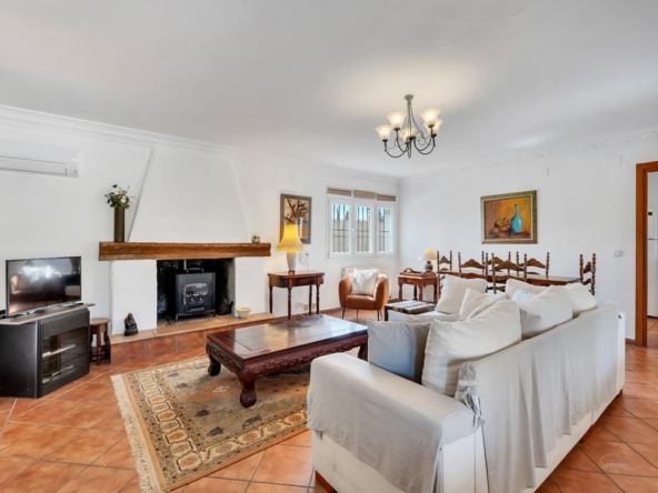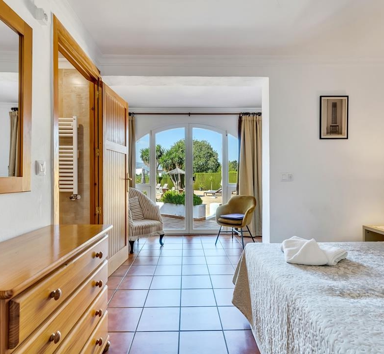 Im Erdgeschoss der Hauptvilla finden Sie 3 Doppelschlafzimmer mit 2 Bädern. Das Hauptschlafzimmer ist riesig und verfügt über ein eigenes Bad. Es gibt einen großen Wohnbereich mit viel natürlichem Licht und einem Kamin für die Winterabende, der zu einer separaten großen Küche mit einer Tür zu den hinteren Terrassen führt. Vom Hauptwohnzimmer aus gelangt man auf die großzügige überdachte Terrasse mit gewölbten Decken – einfach wunderschön –, die wiederum direkt zu den großen Terrassen und dem Poolbereich führt.