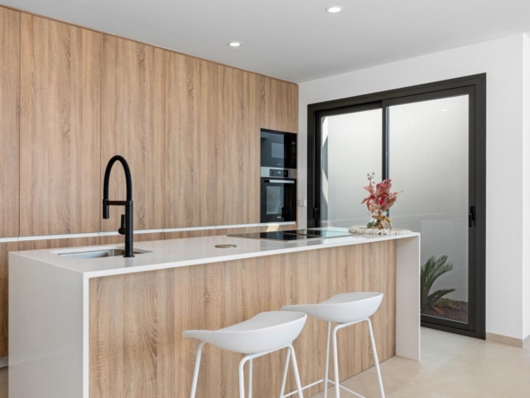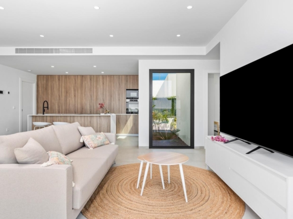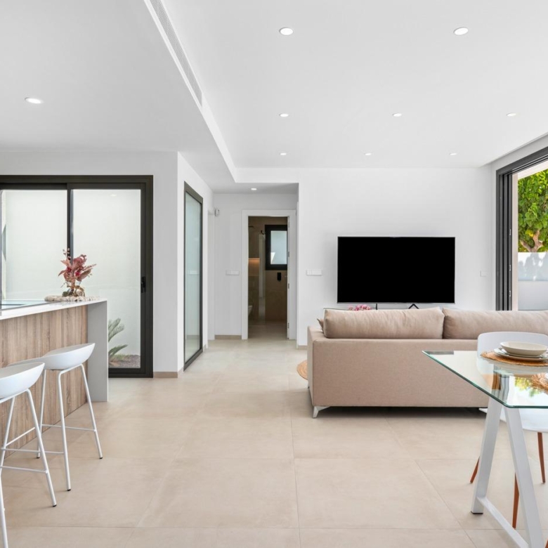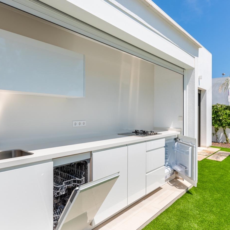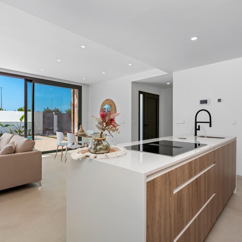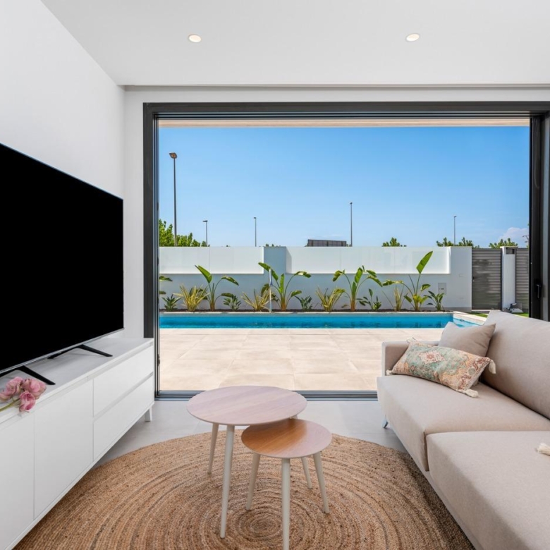 Moderne Villen mit 3 Schlafzimmern, 2 Bädern und 1 Toilette, offener Küche mit Wohnzimmer, Terrasse, privatem Garten mit Schwimmbad, Parkplatz und Solarium.