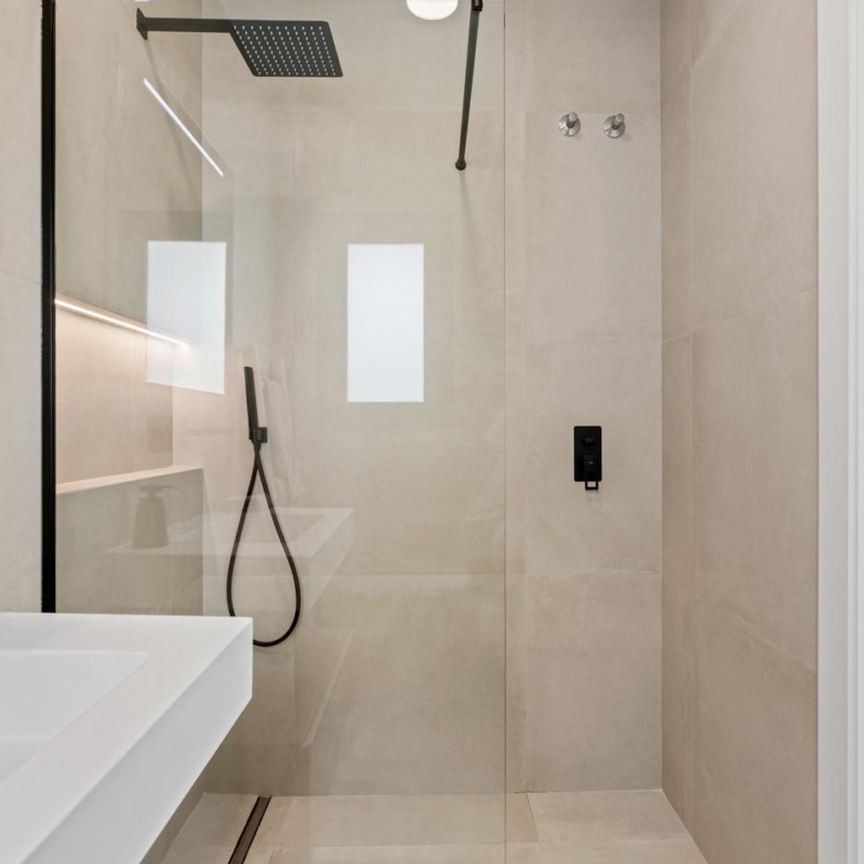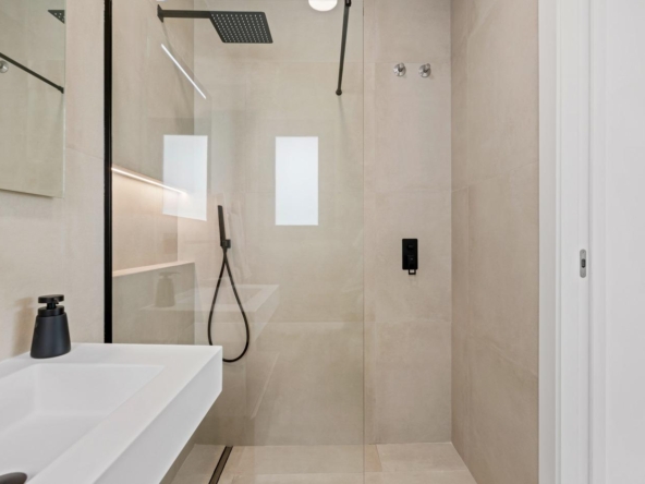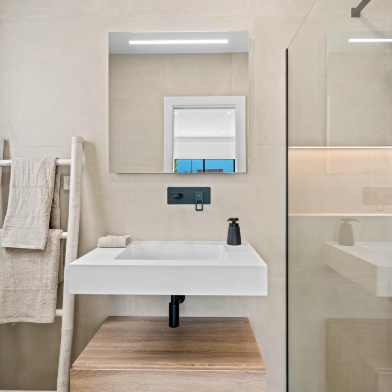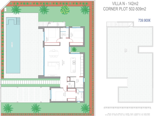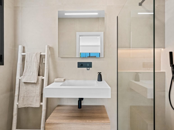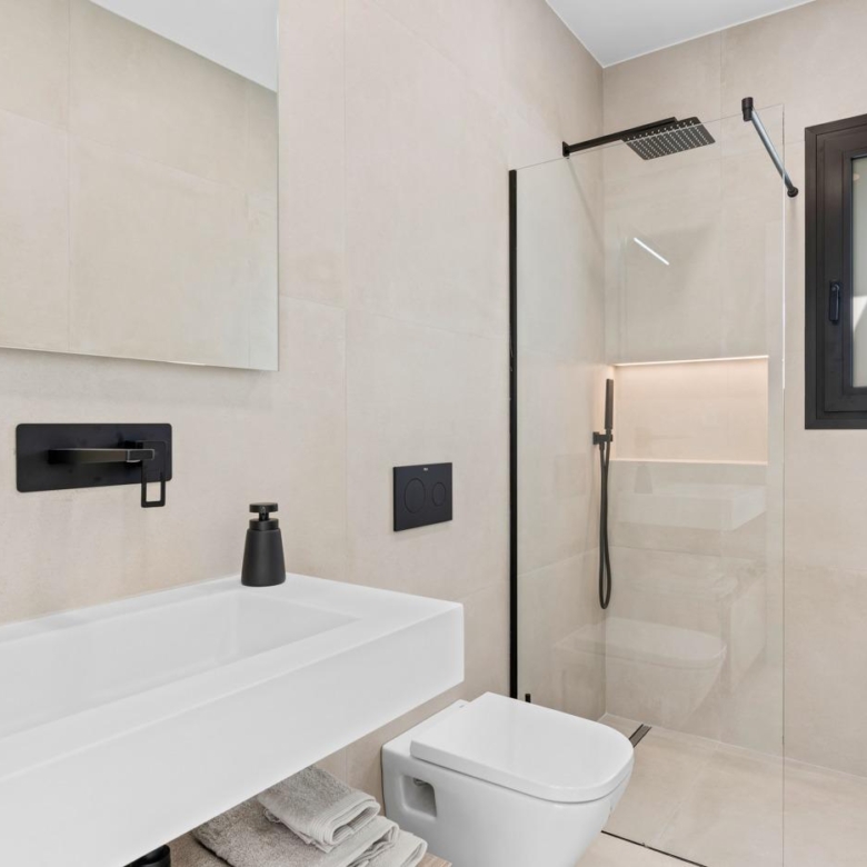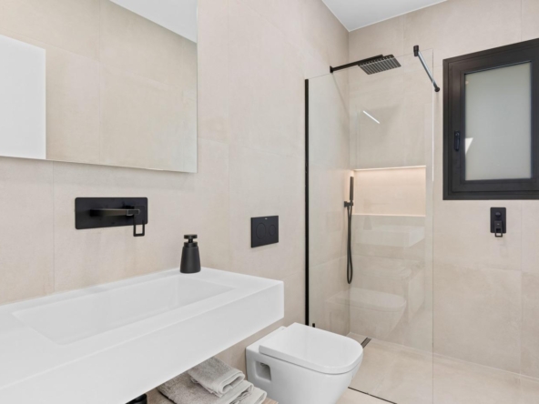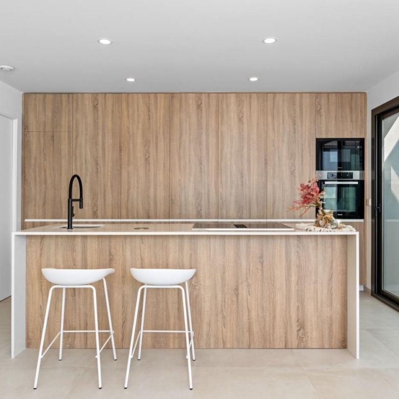 Moderne Villen mit 3 Schlafzimmern, 2 Bädern und 1 Toilette, offener Küche mit Wohnzimmer, Terrasse, privatem Garten mit Schwimmbad, Parkplatz und Solarium.