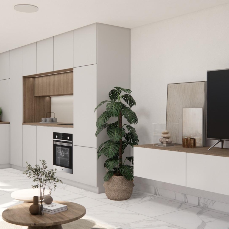 Moderne Villen mit 3 Schlafzimmern und 2 Bädern, offene Küche mit dem Wohnzimmer Einbauschränke, Terrasse, privater Garten, Parkplatz.