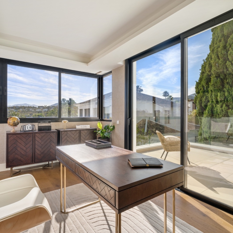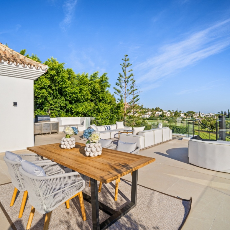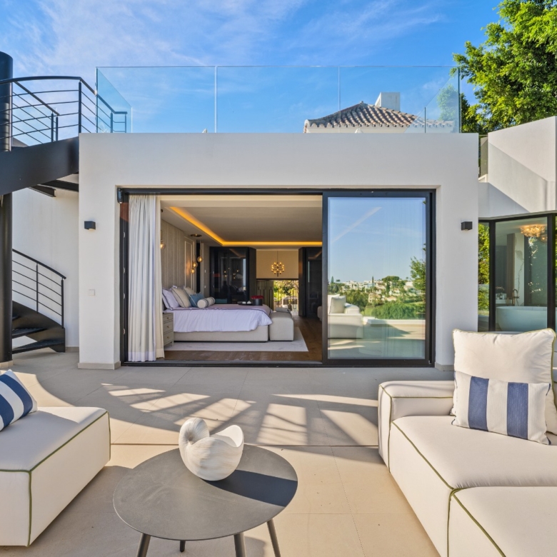 In der prestigeträchtigen Gegend von Marbella gelegen, bietet diese exklusive Villa Luxus und Komfort. Entworfen für diejenigen, die einen anspruchsvollen Lebensstil suchen, befindet sich die Immobilie nur 0,75 km von einem Golfplatz entfernt, was sie zu einer idealen Wahl für Golfliebhaber macht. Die Villa ist ein perfekter Rückzugsort für diejenigen, die die Ruhe und den Charme der Costa del Sol genießen möchten, mit allen modernen Annehmlichkeiten in Reichweite.