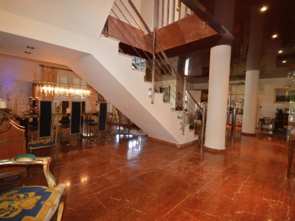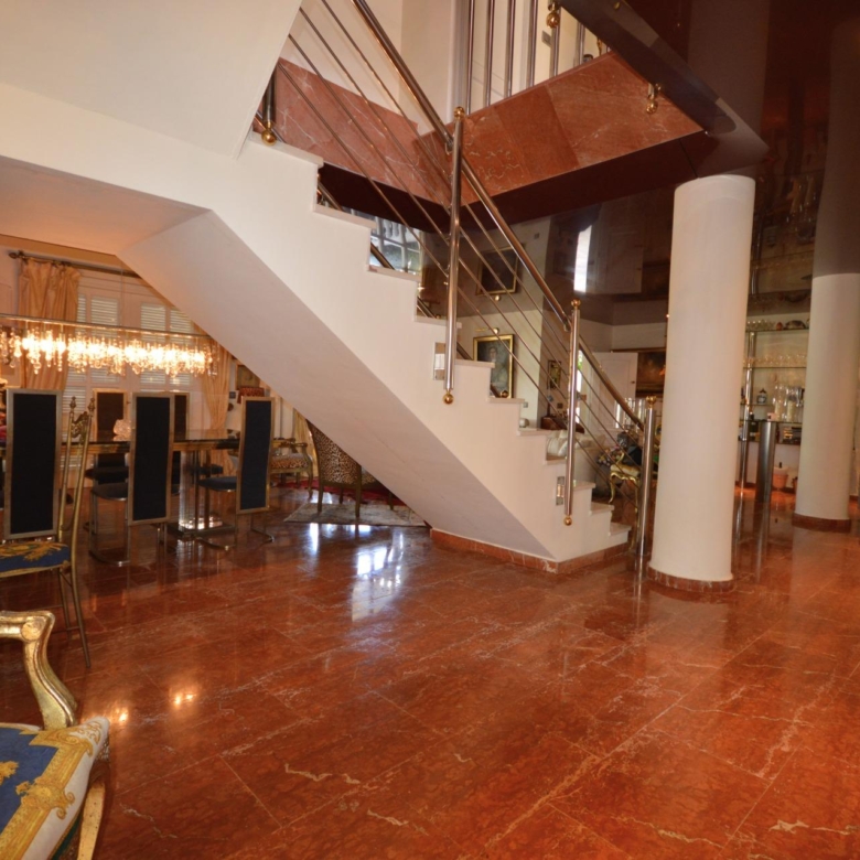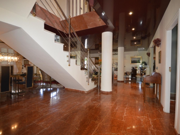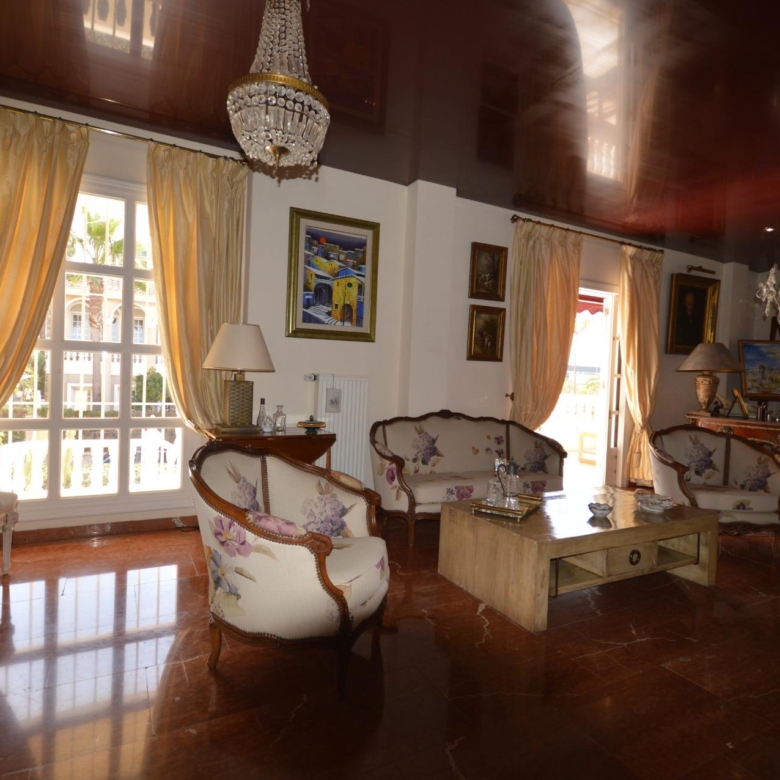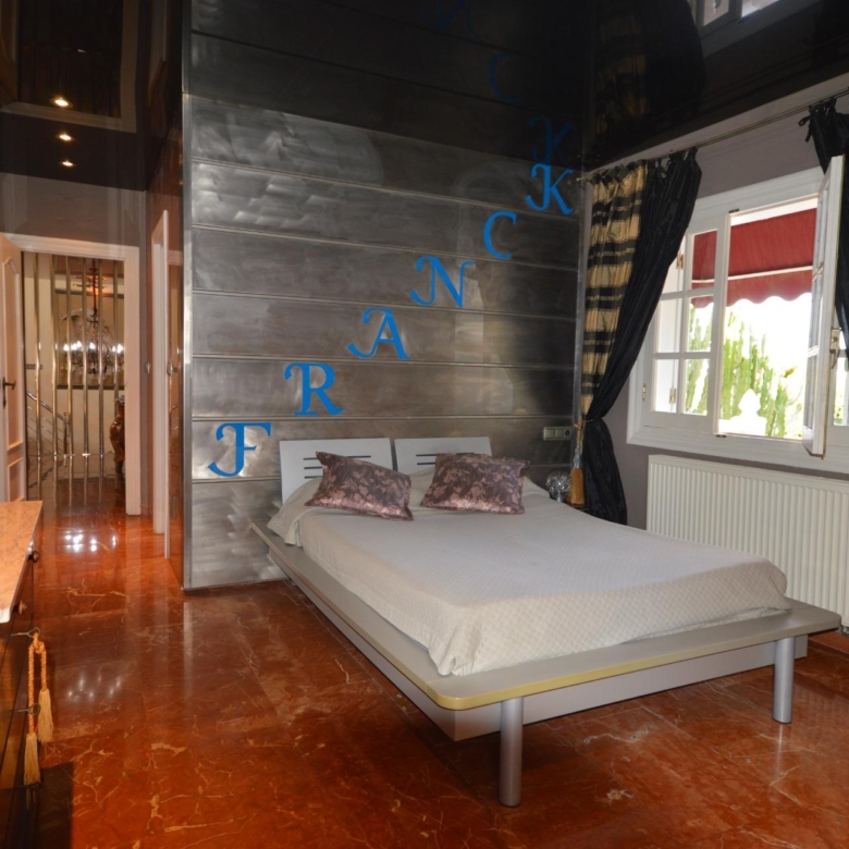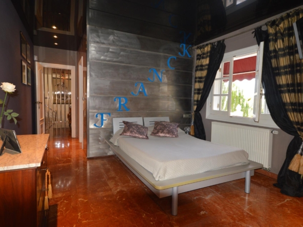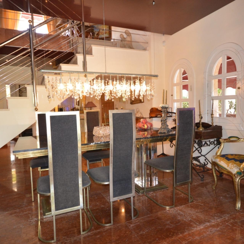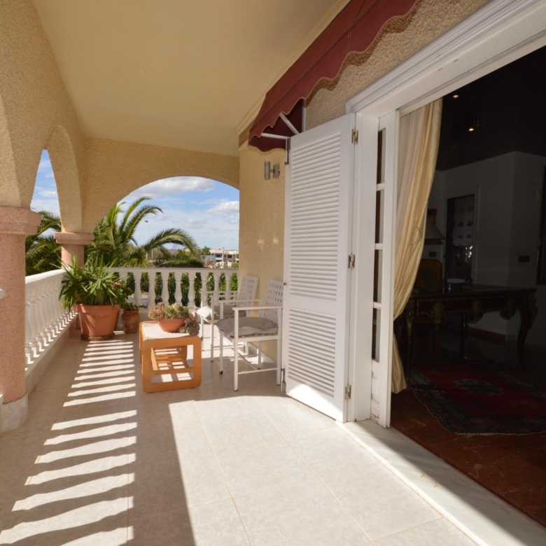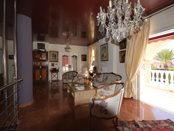 Fabelhafte Luxusvilla in La Veleta (Torrevieja), nur 80 Meter vom Meer entfernt. Wenn Sie große Räume, den Art-Deco-Stil, das Leben am Meer und die Nähe zu allen Annehmlichkeiten lieben, dann ist diese Luxusvilla genau das Richtige für Sie! Schon beim Betreten des Hauses werden Sie entdecken, was den außergewöhnlichen Stil dieses Hauses ausmacht: seine Größe, die großen Räume, die Art-déco-Dekoration, die Marmorböden und vor allem die riesige Treppe, die Sie in die obere Etage führt. Diese erhabene Villa bietet Ihnen eine Wohnfläche von 400 m2, was einer Wohnfläche von 330 m2 entspricht. Sie verfügen über 5 große und schöne Schlafzimmer, eines im Erdgeschoss und 4 im ersten Stock (jedes mit eigener Terrasse). Außerdem verfügt es über 4 Badezimmer, 1 im Erdgeschoss und 3 im ersten Stock. Die verschiedenen Wohnbereiche sind sehr groß und geschmackvoll möbliert und dekoriert. Das Wohn- und Esszimmer bietet viel Helligkeit dank des direkten Zugangs zur Terrasse in der Nähe des Pools. Die Küche ist riesig mit einer zentralen Insel und kann als zweites Esszimmer dienen. Ein Fitnessraum und ein zweites kleines privates Wohnzimmer im Boudoir-Stil, ein erstes Schlafzimmer mit eigenem Bad und eine Toilette befinden sich ebenfalls im Erdgeschoss. Die große Marmortreppe führt Sie ins Obergeschoss, wo Sie ein Büro mit einem großen Wohnzimmer, das auf eine schöne Sonnenterrasse führt, sowie 4 Schlafzimmer und 3 Badezimmer vorfinden. Alle Zimmer auf dieser Etage verfügen über eigene private Terrassen. Über eine Außentreppe können Sie die große Sonnenterrasse mit Meerblick und den Kamin für fabelhafte Grillabende nutzen. Das 720m2 große Grundstück mit seinem angelegten Garten ist eine wahre Oase der Ruhe. Mehrere Terrassenbereiche befinden sich rund um den 4 x 8 Meter großen Privatpool, ein Grillbereich mit Kamin, ein Kinderbereich mit einem aus Holz gebauten Häuschen, ein Jacuzzi für 8 Personen, etc. Eine geschlossene Garage und ein Stellplatz für 4 Autos befinden sich auf dem Grundstück. Diese sehr geräumige Villa wurde 2012 renoviert und bietet Ihnen viel Platz und Ruhe. Diese Gegend ist eine der besten in Torrevieja, da sie sehr ruhig ist und alle Annehmlichkeiten in unmittelbarer Nähe liegen. Nur 80 Meter vom Meer und den Supermärkten entfernt, mit schneller Anbindung an die N332 und die Autobahn AP7. Das Krankenhaus von Torrevieja ist nur 300 Meter entfernt. Die Einkaufszentren Habaneras und La Zenia Boulevard sind 5 km entfernt. Der Flughafen von Alicante ist 40 Minuten mit dem Auto entfernt.