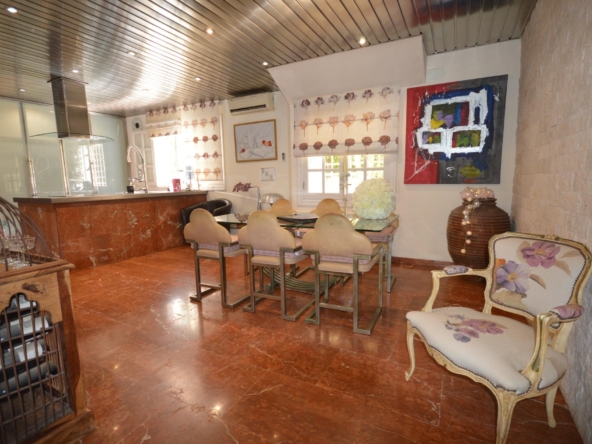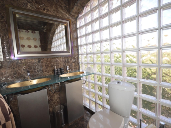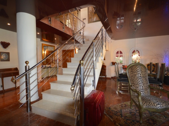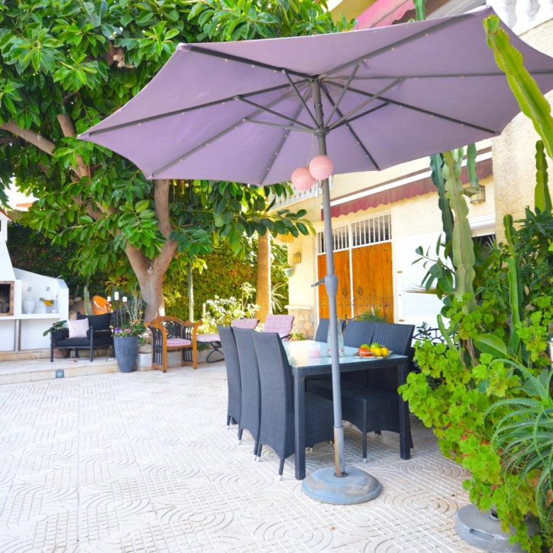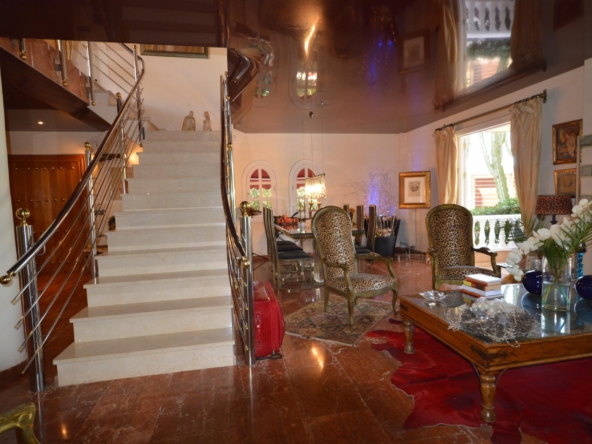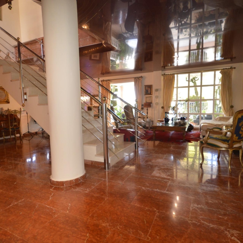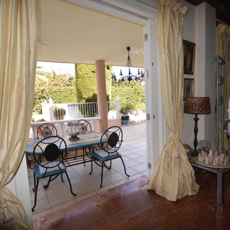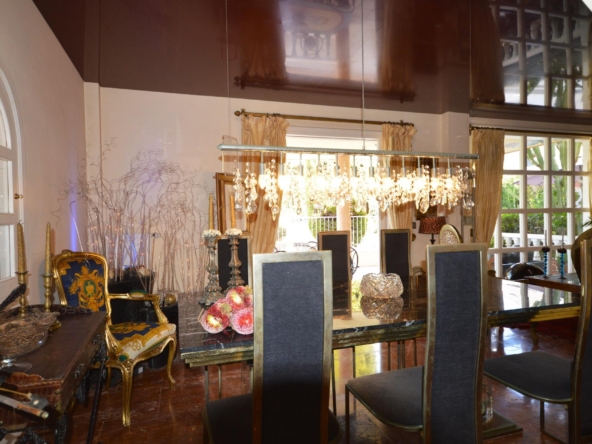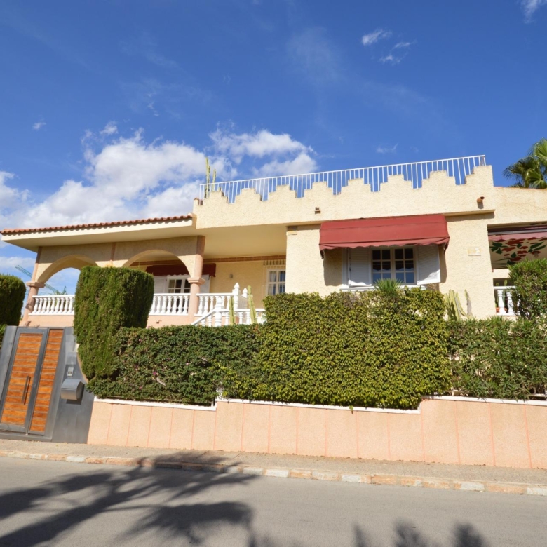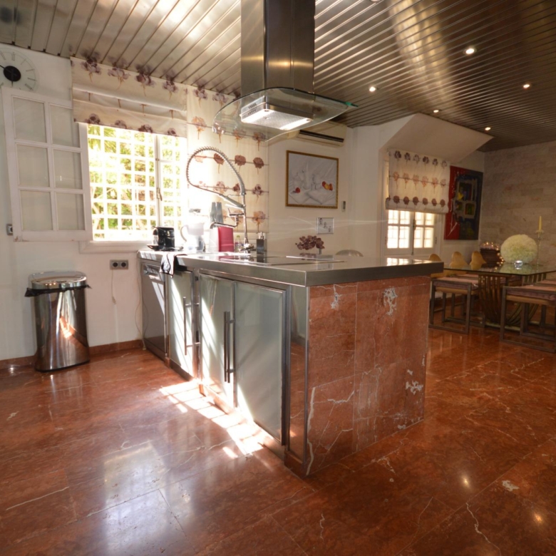 Fabelhafte Luxusvilla in La Veleta (Torrevieja), nur 80 Meter vom Meer entfernt. Wenn Sie große Räume, den Art-Deco-Stil, das Leben am Meer und die Nähe zu allen Annehmlichkeiten lieben, dann ist diese Luxusvilla genau das Richtige für Sie! Schon beim Betreten des Hauses werden Sie entdecken, was den außergewöhnlichen Stil dieses Hauses ausmacht: seine Größe, die großen Räume, die Art-déco-Dekoration, die Marmorböden und vor allem die riesige Treppe, die Sie in die obere Etage führt. Diese erhabene Villa bietet Ihnen eine Wohnfläche von 400 m2, was einer Wohnfläche von 330 m2 entspricht. Sie verfügen über 5 große und schöne Schlafzimmer, eines im Erdgeschoss und 4 im ersten Stock (jedes mit eigener Terrasse). Außerdem verfügt es über 4 Badezimmer, 1 im Erdgeschoss und 3 im ersten Stock. Die verschiedenen Wohnbereiche sind sehr groß und geschmackvoll möbliert und dekoriert. Das Wohn- und Esszimmer bietet viel Helligkeit dank des direkten Zugangs zur Terrasse in der Nähe des Pools. Die Küche ist riesig mit einer zentralen Insel und kann als zweites Esszimmer dienen. Ein Fitnessraum und ein zweites kleines privates Wohnzimmer im Boudoir-Stil, ein erstes Schlafzimmer mit eigenem Bad und eine Toilette befinden sich ebenfalls im Erdgeschoss. Die große Marmortreppe führt Sie ins Obergeschoss, wo Sie ein Büro mit einem großen Wohnzimmer, das auf eine schöne Sonnenterrasse führt, sowie 4 Schlafzimmer und 3 Badezimmer vorfinden. Alle Zimmer auf dieser Etage verfügen über eigene private Terrassen. Über eine Außentreppe können Sie die große Sonnenterrasse mit Meerblick und den Kamin für fabelhafte Grillabende nutzen. Das 720m2 große Grundstück mit seinem angelegten Garten ist eine wahre Oase der Ruhe. Mehrere Terrassenbereiche befinden sich rund um den 4 x 8 Meter großen Privatpool, ein Grillbereich mit Kamin, ein Kinderbereich mit einem aus Holz gebauten Häuschen, ein Jacuzzi für 8 Personen, etc. Eine geschlossene Garage und ein Stellplatz für 4 Autos befinden sich auf dem Grundstück. Diese sehr geräumige Villa wurde 2012 renoviert und bietet Ihnen viel Platz und Ruhe. Diese Gegend ist eine der besten in Torrevieja, da sie sehr ruhig ist und alle Annehmlichkeiten in unmittelbarer Nähe liegen. Nur 80 Meter vom Meer und den Supermärkten entfernt, mit schneller Anbindung an die N332 und die Autobahn AP7. Das Krankenhaus von Torrevieja ist nur 300 Meter entfernt. Die Einkaufszentren Habaneras und La Zenia Boulevard sind 5 km entfernt. Der Flughafen von Alicante ist 40 Minuten mit dem Auto entfernt.