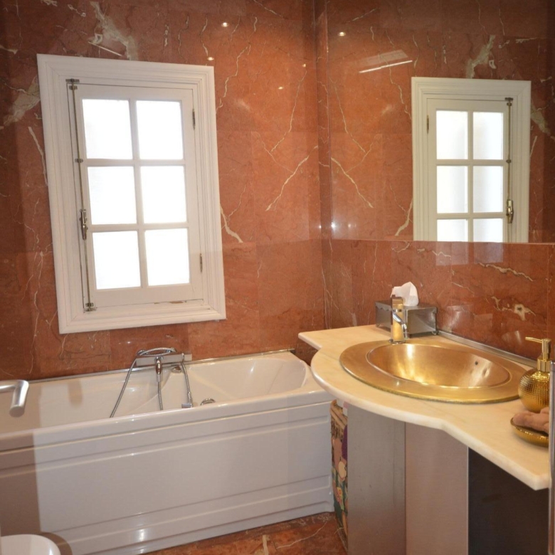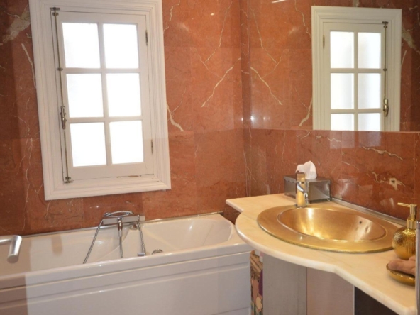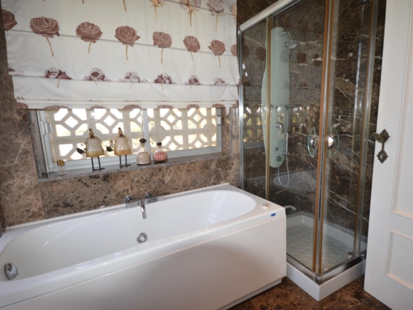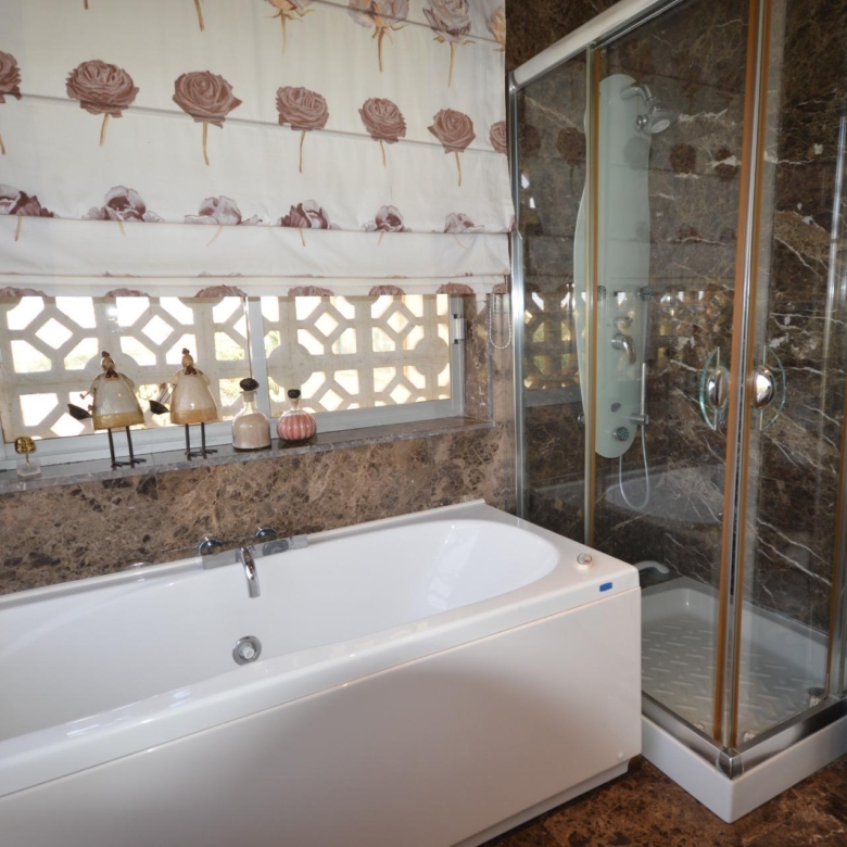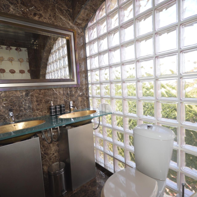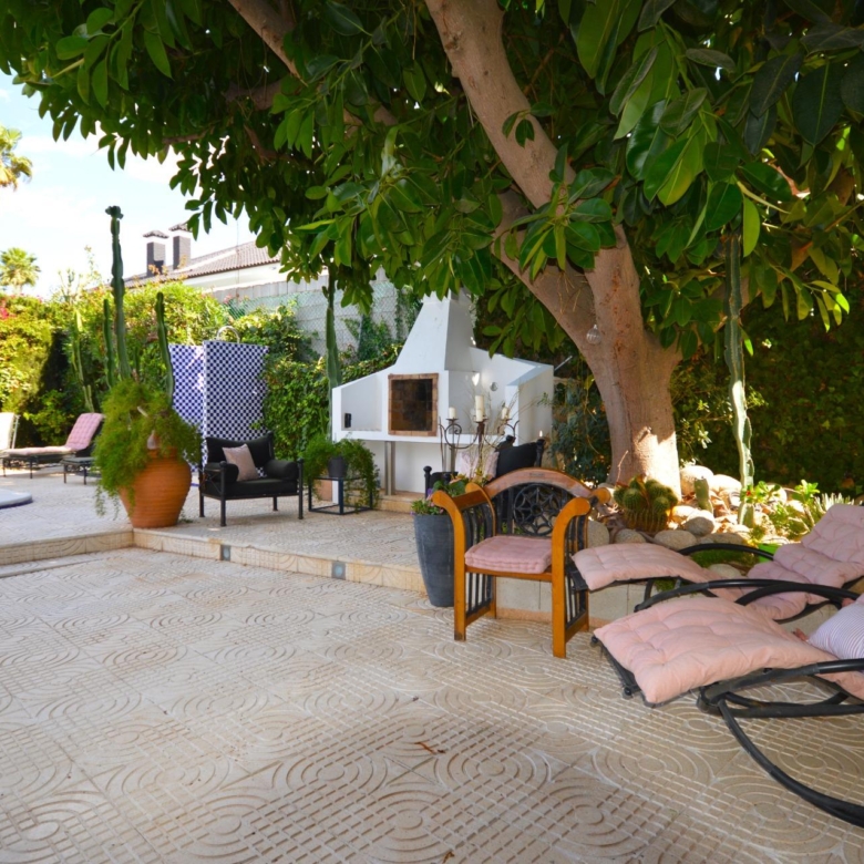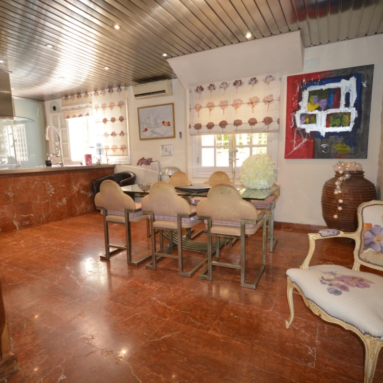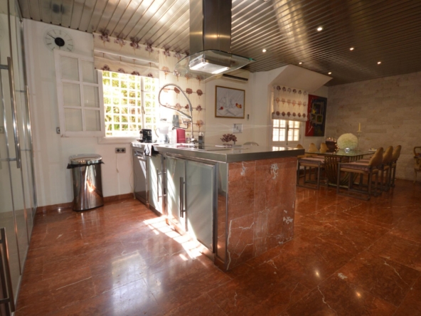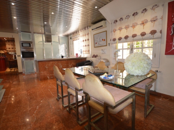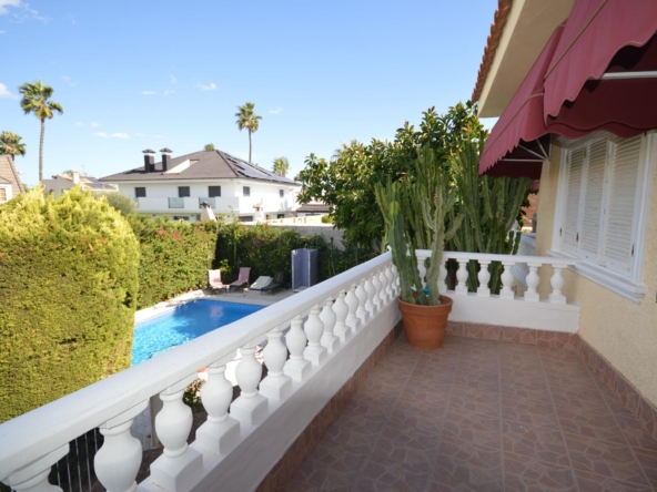 Fabelhafte Luxusvilla in La Veleta (Torrevieja), nur 80 Meter vom Meer entfernt. Wenn Sie große Räume, den Art-Deco-Stil, das Leben am Meer und die Nähe zu allen Annehmlichkeiten lieben, dann ist diese Luxusvilla genau das Richtige für Sie! Schon beim Betreten des Hauses werden Sie entdecken, was den außergewöhnlichen Stil dieses Hauses ausmacht: seine Größe, die großen Räume, die Art-déco-Dekoration, die Marmorböden und vor allem die riesige Treppe, die Sie in die obere Etage führt. Diese erhabene Villa bietet Ihnen eine Wohnfläche von 400 m2, was einer Wohnfläche von 330 m2 entspricht. Sie verfügen über 5 große und schöne Schlafzimmer, eines im Erdgeschoss und 4 im ersten Stock (jedes mit eigener Terrasse). Außerdem verfügt es über 4 Badezimmer, 1 im Erdgeschoss und 3 im ersten Stock. Die verschiedenen Wohnbereiche sind sehr groß und geschmackvoll möbliert und dekoriert. Das Wohn- und Esszimmer bietet viel Helligkeit dank des direkten Zugangs zur Terrasse in der Nähe des Pools. Die Küche ist riesig mit einer zentralen Insel und kann als zweites Esszimmer dienen. Ein Fitnessraum und ein zweites kleines privates Wohnzimmer im Boudoir-Stil, ein erstes Schlafzimmer mit eigenem Bad und eine Toilette befinden sich ebenfalls im Erdgeschoss. Die große Marmortreppe führt Sie ins Obergeschoss, wo Sie ein Büro mit einem großen Wohnzimmer, das auf eine schöne Sonnenterrasse führt, sowie 4 Schlafzimmer und 3 Badezimmer vorfinden. Alle Zimmer auf dieser Etage verfügen über eigene private Terrassen. Über eine Außentreppe können Sie die große Sonnenterrasse mit Meerblick und den Kamin für fabelhafte Grillabende nutzen. Das 720m2 große Grundstück mit seinem angelegten Garten ist eine wahre Oase der Ruhe. Mehrere Terrassenbereiche befinden sich rund um den 4 x 8 Meter großen Privatpool, ein Grillbereich mit Kamin, ein Kinderbereich mit einem aus Holz gebauten Häuschen, ein Jacuzzi für 8 Personen, etc. Eine geschlossene Garage und ein Stellplatz für 4 Autos befinden sich auf dem Grundstück. Diese sehr geräumige Villa wurde 2012 renoviert und bietet Ihnen viel Platz und Ruhe. Diese Gegend ist eine der besten in Torrevieja, da sie sehr ruhig ist und alle Annehmlichkeiten in unmittelbarer Nähe liegen. Nur 80 Meter vom Meer und den Supermärkten entfernt, mit schneller Anbindung an die N332 und die Autobahn AP7. Das Krankenhaus von Torrevieja ist nur 300 Meter entfernt. Die Einkaufszentren Habaneras und La Zenia Boulevard sind 5 km entfernt. Der Flughafen von Alicante ist 40 Minuten mit dem Auto entfernt.
