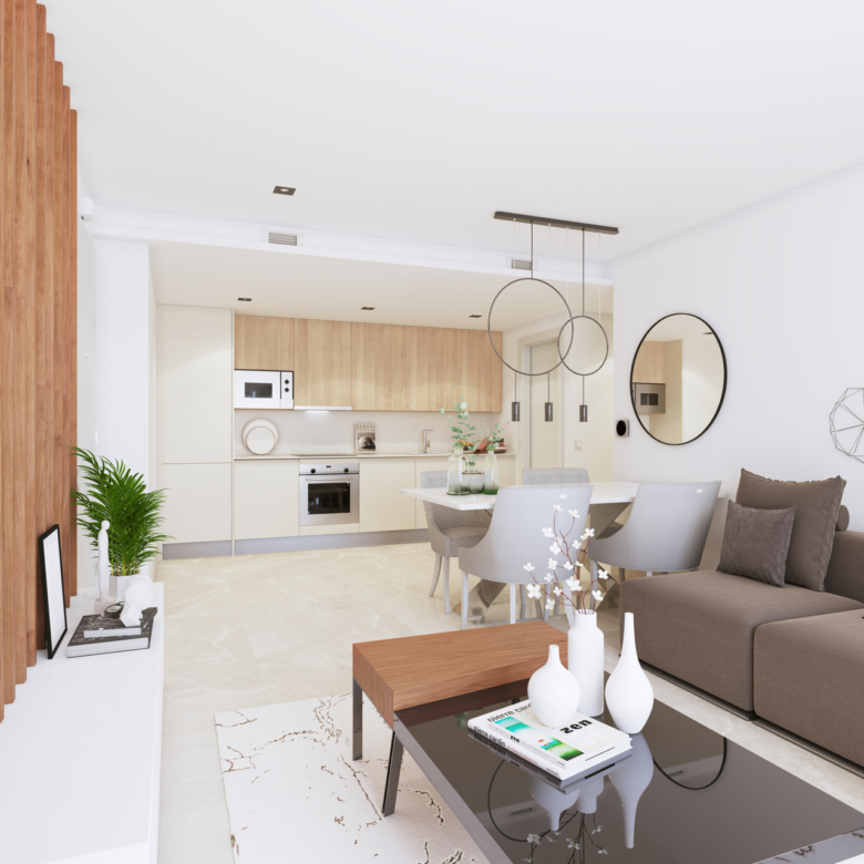 Das Innere der Wohnungen ist darauf ausgelegt, Komfort und Funktionalität zu maximieren. Mit Optionen von 1 bis 3 Schlafzimmern und 1 oder 2 Bädern ist jede Immobilie so gestaltet, dass sie einen flexiblen und einladenden Wohnraum bietet. Die Einbeziehung moderner Geräte und Klimaanlagen stellt sicher, dass jedes Zuhause ausgestattet ist, um die täglichen Bedürfnisse seiner Bewohner zu erfüllen. Einbauschränke verleihen nicht nur einen Hauch von Eleganz, sondern bieten auch praktischen Stauraum, der die Räume ordentlich und aufgeräumt hält.