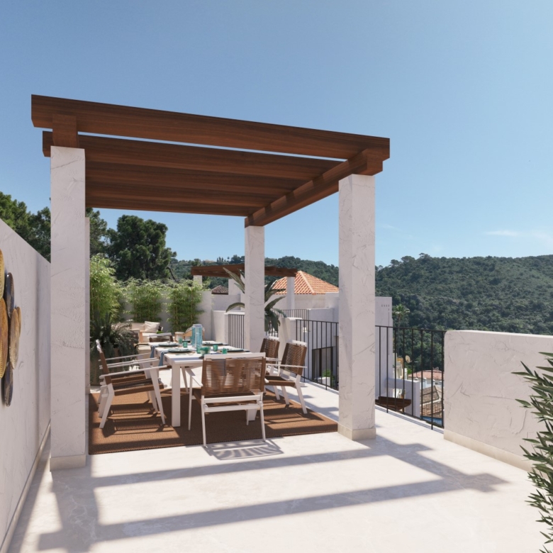 Die Außenbereiche dieser Wohnanlage in Benahavís sind darauf ausgelegt, eine entspannende und angenehme Umgebung zu bieten. Jede Immobilie verfügt über eine private Terrasse, ideal, um das mediterrane Klima und die Zeit im Freien zu genießen. Darüber hinaus haben die Erdgeschosswohnungen direkten Zugang zu den Gartenbereichen, die zusätzlichen Raum für Freizeit und Entspannung bieten. Das Solarium ist ein weiteres Highlight und bietet den perfekten Ort, um die Sonne zu genießen oder die Aussicht auf die natürliche Umgebung des Komplexes zu bewundern.