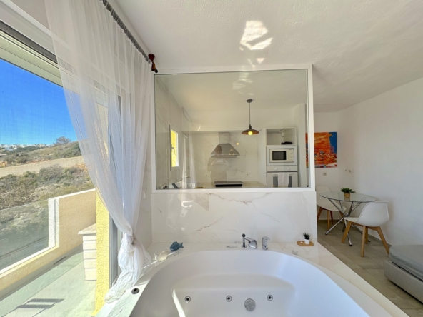 Wir präsentieren Ihnen dieses charmante Apartment mit Klimaanlage und Whirlpool, das sich in der prestigeträchtigen Urbanisation Cumbre del Sol in Pueblo de la Luz, Benitachell, befindet. Mit seiner unvergleichlichen Lage an der Küste von Alicante bietet dieses Zuhause beeindruckende Ausblicke auf das Mittelmeer und eine ruhige Umgebung, ideal, um die Schönheit der Natur zu genießen.