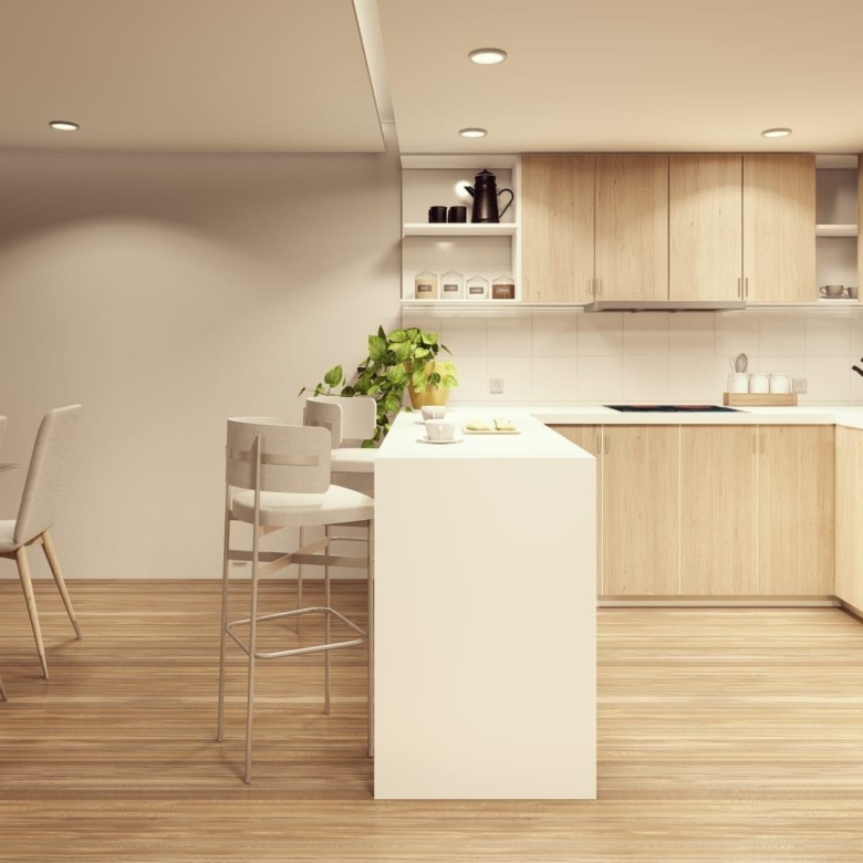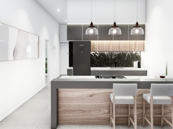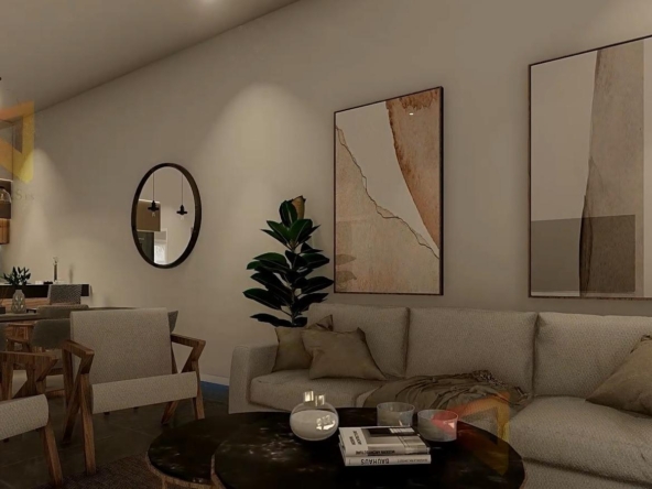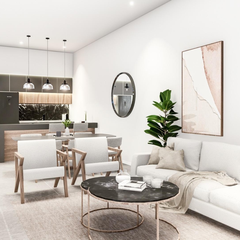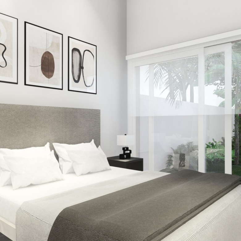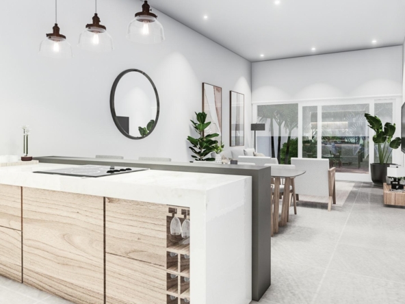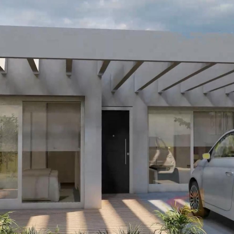 Moderne Immobilien auf einer Etage gebaut, hat 3 Schlafzimmer, 2 Bäder, offene Küche mit dem Wohnzimmer, Garten mit dem Pool und Parkplatz.