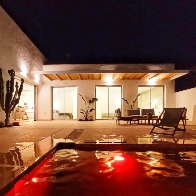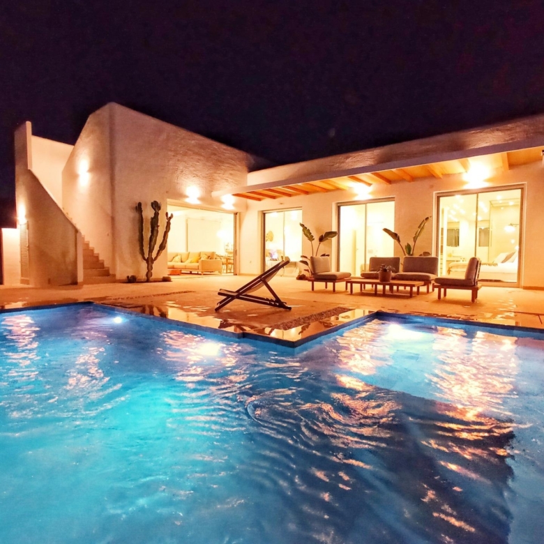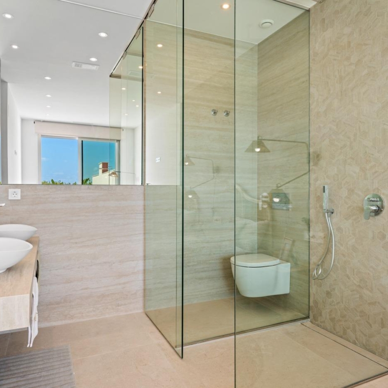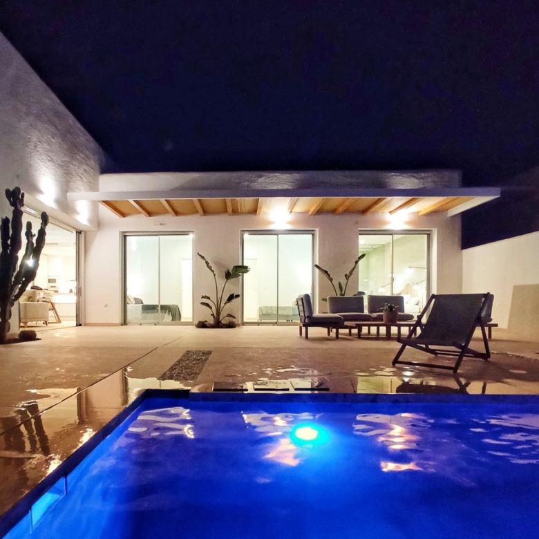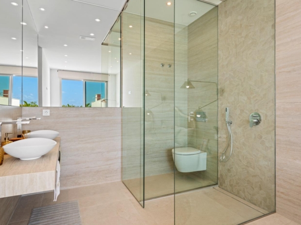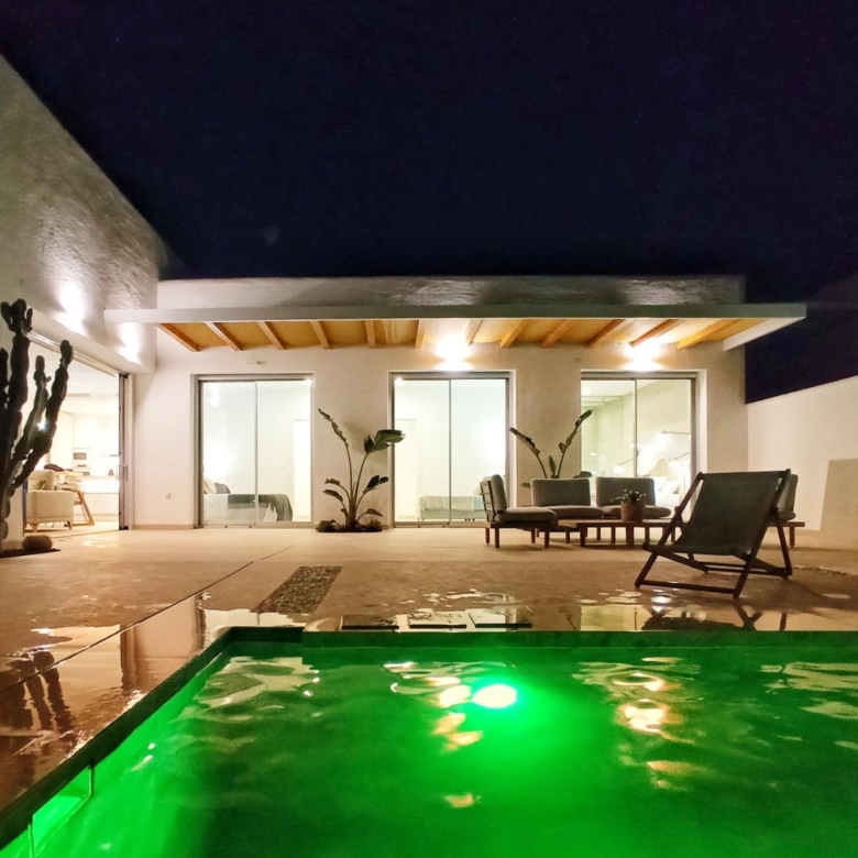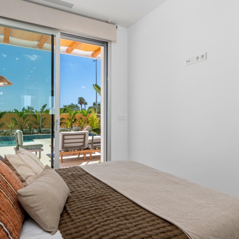 Neubau Villen im modernen Stil mit offener Küche und Wohnbereich, 3 Schlafzimmer, 2 Bäder, privates Grundstück mit Terrasse, Parkplatz und privatem Pool, Garten und eine wunderbare Sonnenterrasse mit herrlichem Blick.