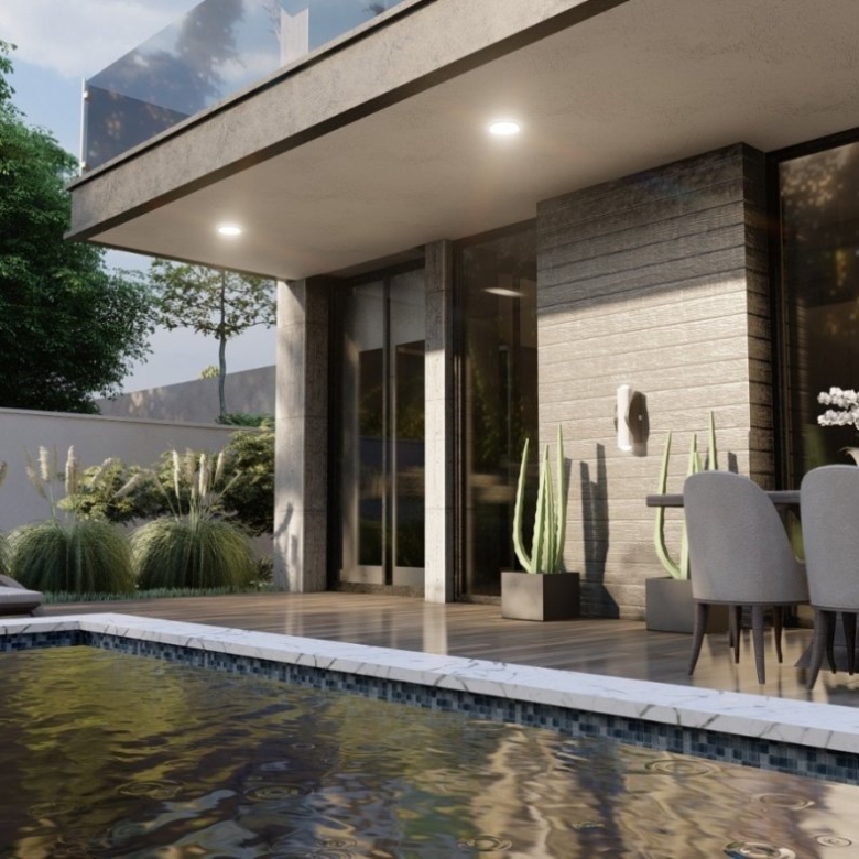 Unabhängige Villa über 2 Etagen gebaut und verfügt über 3 Schlafzimmer, 2 Bäder, 2 Ankleideräume, offene Küche mit dem Wohnbereich, Garage, privater Garten mit Swimmingpool.