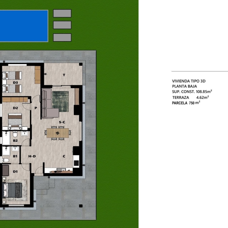 Jedes Haus hat 3 Schlafzimmer und 2 Bäder, ist in einem zeitgenössischen Stil gestaltet und verfügt über ein offenes Wohnkonzept mit einer Einbauküche und einem schönen Wohn-Esszimmer.
