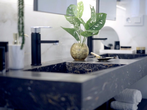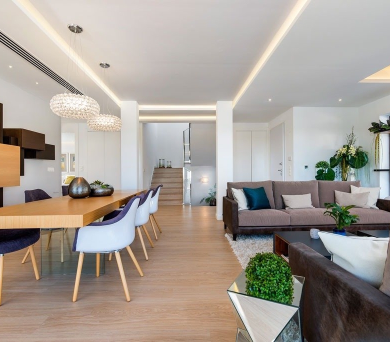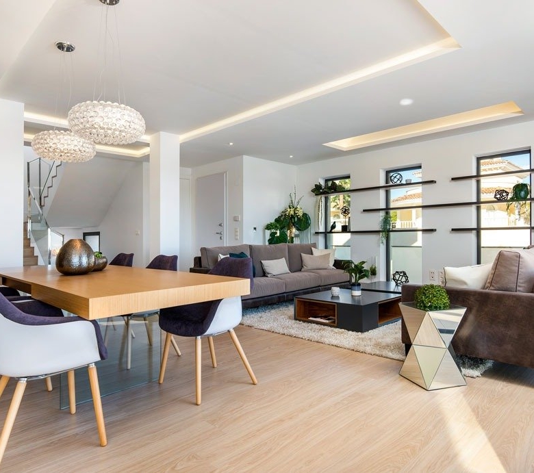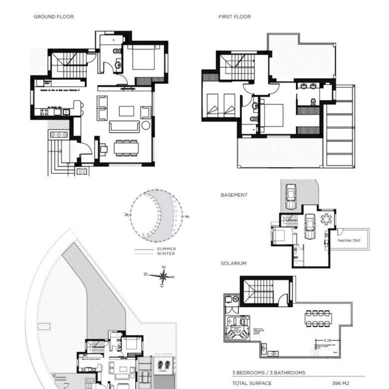Villa bauen über 3 Etagen, mit 3 Schlafzimmern und 3 Bädern, offene Küche mit dem Wohnbereich, Einbauschränke, private Sonnenterrasse, Keller, privaten Garten mit dem Pool und Parkplatz.