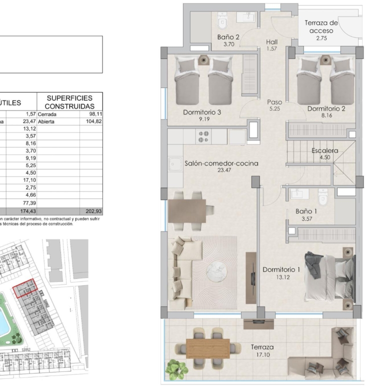 Die Wohnanlage verfügt über 3- und 2-Schlafzimmer-Wohnungen, beide Typen mit 2 Vollbädern, offener Küche mit Wohnzimmer, Einbauschränken, Terrasse und Parkplatz.