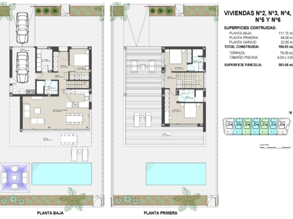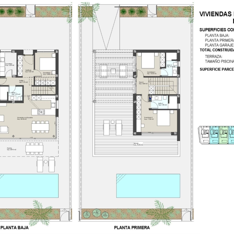 Villen von 199 m² gebaut auf den Grundstücken von 385 m², 438 m² und 490 m².