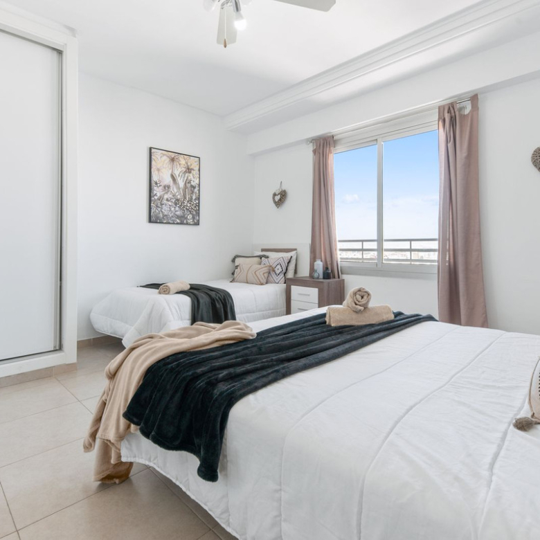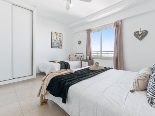 Perched on the 19th floor of one of Alicante’s tallest buildings, this southwest-facing apartment is ideal for soaking up the winter sun. Its breathtaking views are a standout feature. The building’s entrance lobby is particularly welcoming, with exclusive, spacious lounge areas designed for relaxation. A reception area within the lobby further enhances security and is extremely convenient for guests 24/7.
