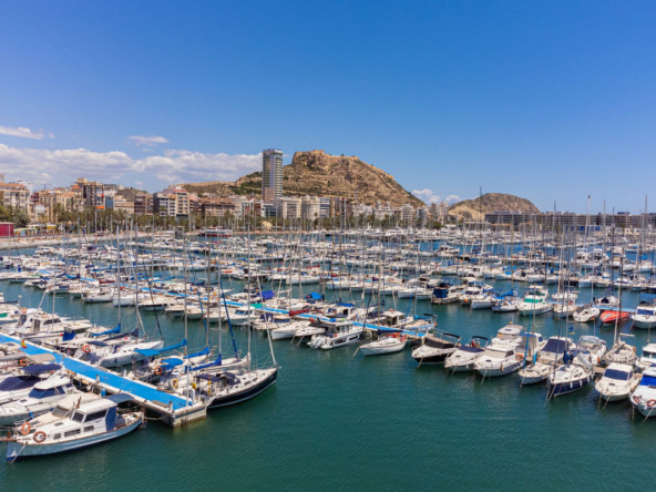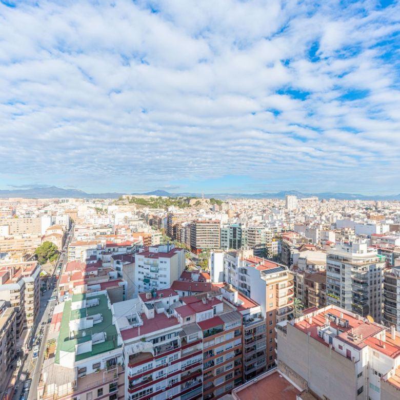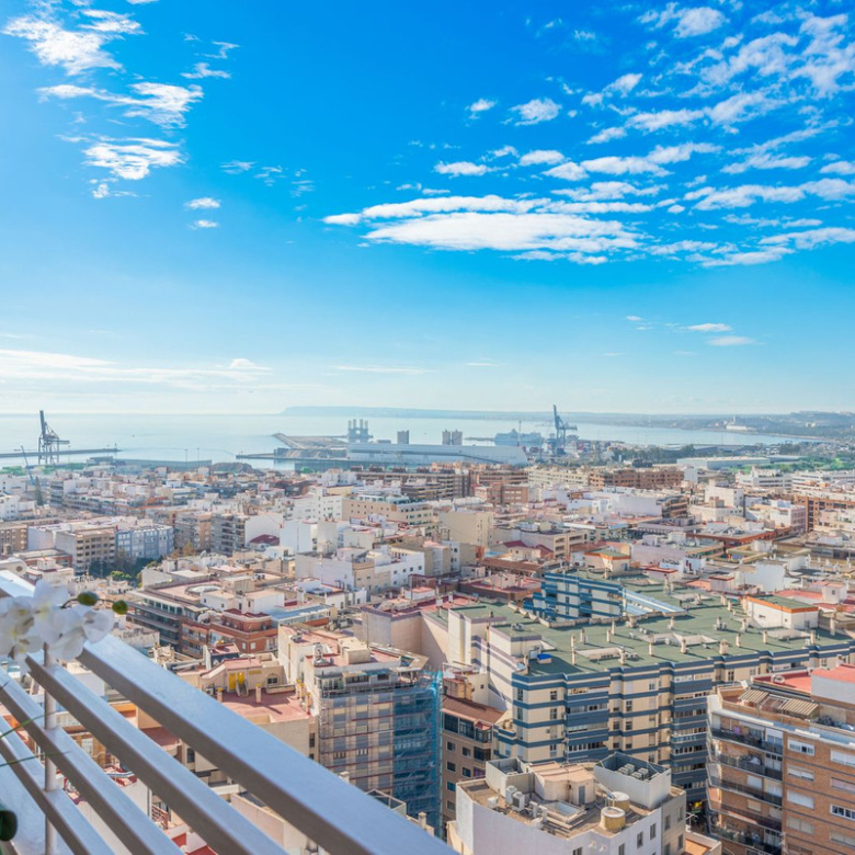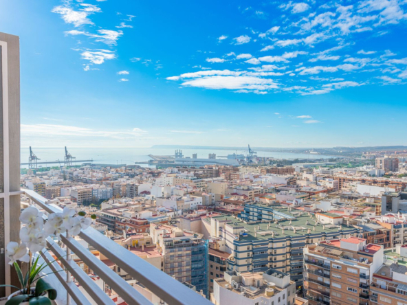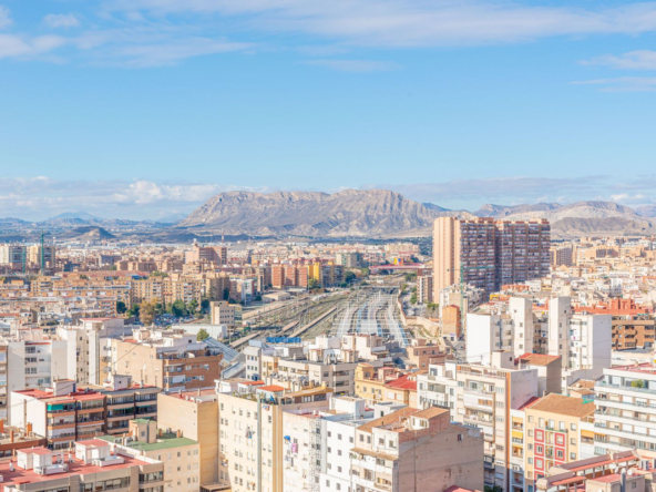 Located in the heart of Alicante city, adjacent to the Corte Inglés department store, this exceptional high-floor apartment boasts commanding views of the city and the Mediterranean. Its prime location puts all amenities within walking distance: just a one-minute stroll to the exclusive Avenida Maisonave shopping street, a five-minute walk to the marina, and a short, leisurely stroll along the palm-lined Esplanade to the beach. The railway station, offering a high-speed connection to Madrid in just two and a half hours, is only five minutes away, as is the tram service to El Campello, Altea, and destinations further north.