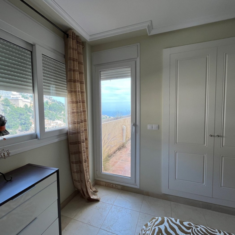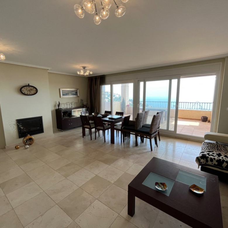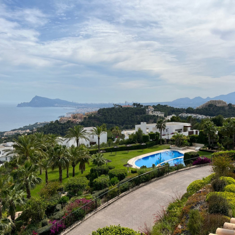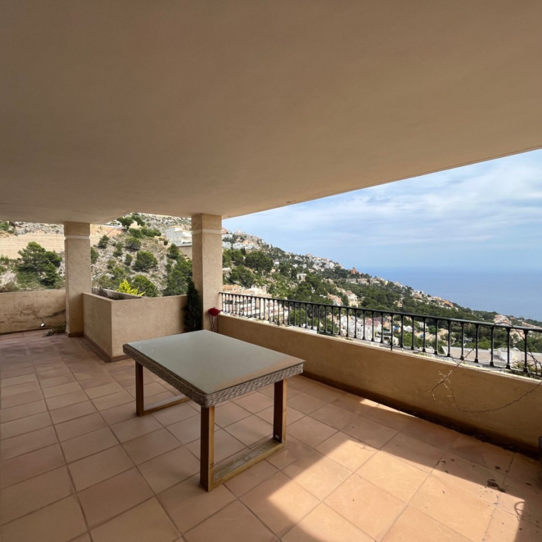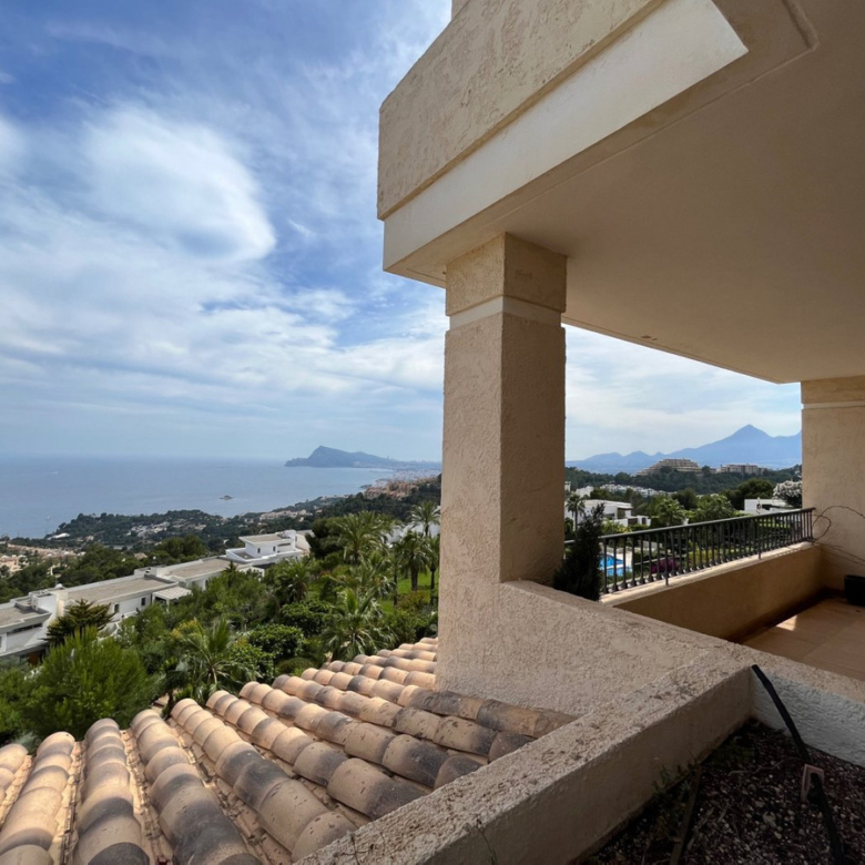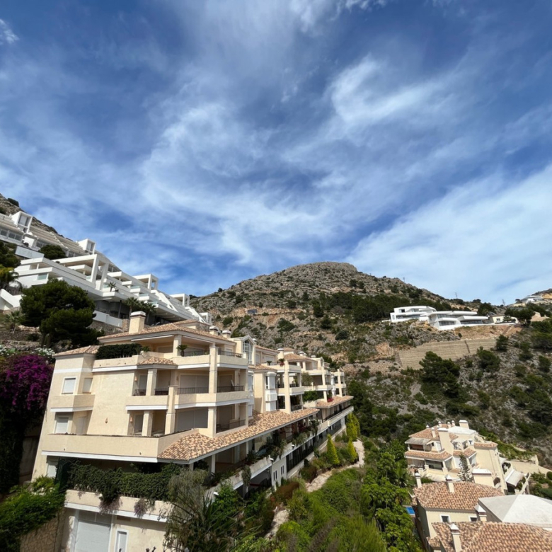 Flat for sale in Altea Hills. It is an exclusive property that offers unrepeatable views. One of the best works carried out throughout the Costa Blanca. The flat consists of a total of 273 square meters built and 174 square meters useful. The apartment is composed of: Three bedrooms, two doubles with the exits to the terrace completely furnished and another simple bedroom. It also has three complete bathrooms. A spacious living room next to the terrace of about 40 square meters with wonderful views and its own jacuzzi. An independent and fully equipped kitchen and a gallery-laundry room. With respect to the extras that this property has the following: Air conditioning. Electric blinds. Talking about the urbanization and extras of this property: Large urbanization with swimming pool. Children’s play area. Parking space. Storeroom.