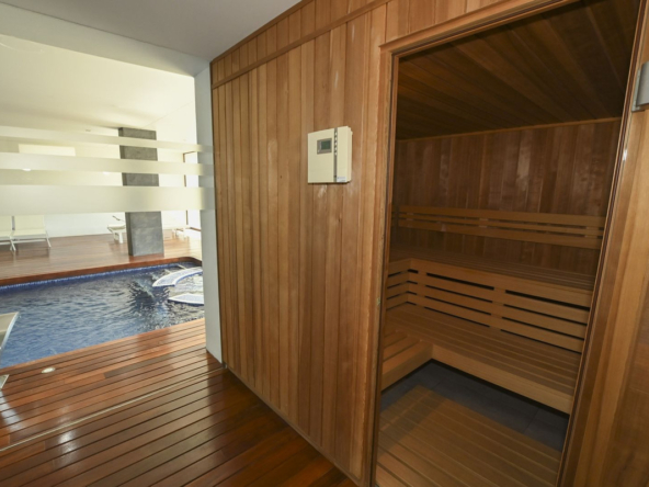 The apartment offers additional amenities such as exterior and interior blinds, domotic systems, alarm, underfloor heating and air conditioning. In addition, the complex has an outdoor and indoor swimming pool, gym, sauna, spa and parking with sea views, providing an exclusive and relaxing lifestyle to its residents.