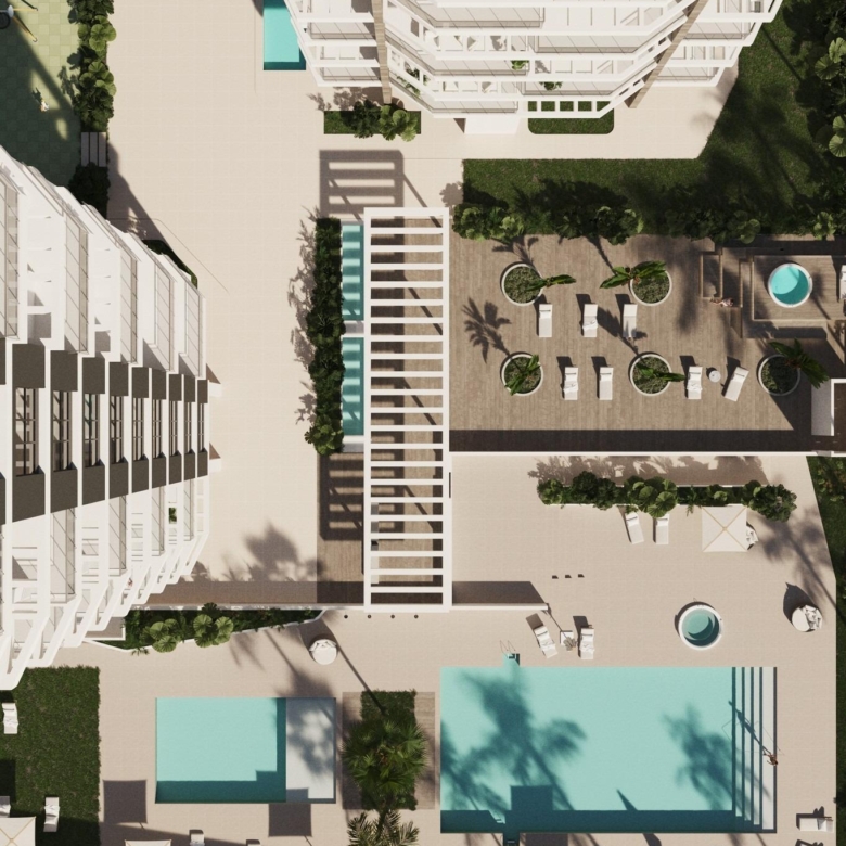 This exclusive complex features two elegant towers of 15 floors, offering a selection of 2, 3, and 4-bedroom apartments. All homes include a private underground parking space and storage room, and are designed to maximize natural light and panoramic views of the Mediterranean Sea and Las Salinas lagoon, especially from the seventh floor upwards.