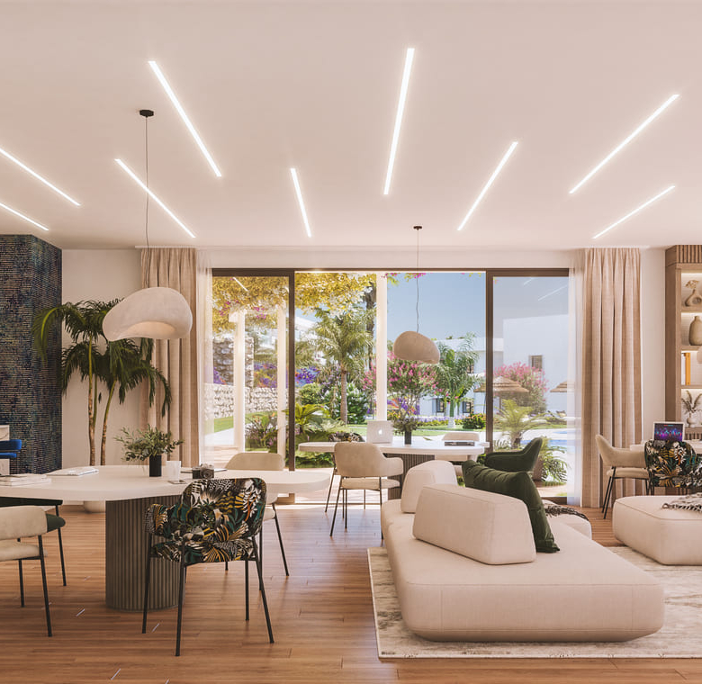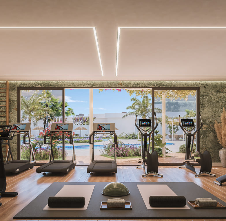 The exteriors of these properties are designed to make the most of Casares’ natural surroundings. Each home features a private garden, ideal for enjoying the Mediterranean climate. Additionally, the terraces offer extra outdoor space, perfect for relaxing or entertaining guests while enjoying the stunning sea views. The community also boasts extensive landscaped areas, providing a green and tranquil environment for all residents.