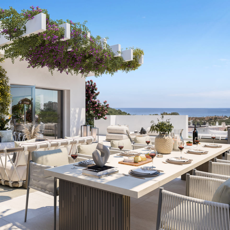 The exteriors of these properties are designed to make the most of Casares’ natural surroundings. Each home features a private garden, ideal for enjoying the Mediterranean climate. Additionally, the terraces offer extra outdoor space, perfect for relaxing or entertaining guests while enjoying the stunning sea views. The community also boasts extensive landscaped areas, providing a green and tranquil environment for all residents.