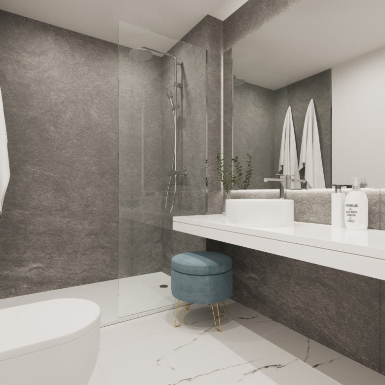 The interiors of the homes in Casares Costa are designed to offer maximum comfort and functionality. With a layout that includes two bedrooms and two bathrooms, each space is optimized for modern living. The porcelain tile floors add a touch of elegance and are easy to maintain. The inclusion of modern appliances ensures that the kitchens are ready for use from day one. Built-in wardrobes offer practical storage solutions, keeping spaces clear and organized. The video intercom adds an additional level of security and convenience, allowing residents to efficiently control access to their homes. These interior features ensure that each home is a welcoming and functional retreat.