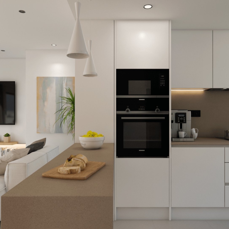The interior of the homes is designed with a focus on quality and comfort. Porcelain tile floors add a touch of elegance and durability, while integrated appliances make daily life easier. Built-in wardrobes offer efficient storage solutions, optimizing the available space. Additionally, each unit is equipped with a video intercom, ensuring security and peace of mind. Distribution options include 1 to 4 bedrooms and 1 to 3 bathrooms, allowing residents to choose the configuration that best suits their needs. These features ensure a modern and functional environment, ideal for enjoying coastal living.