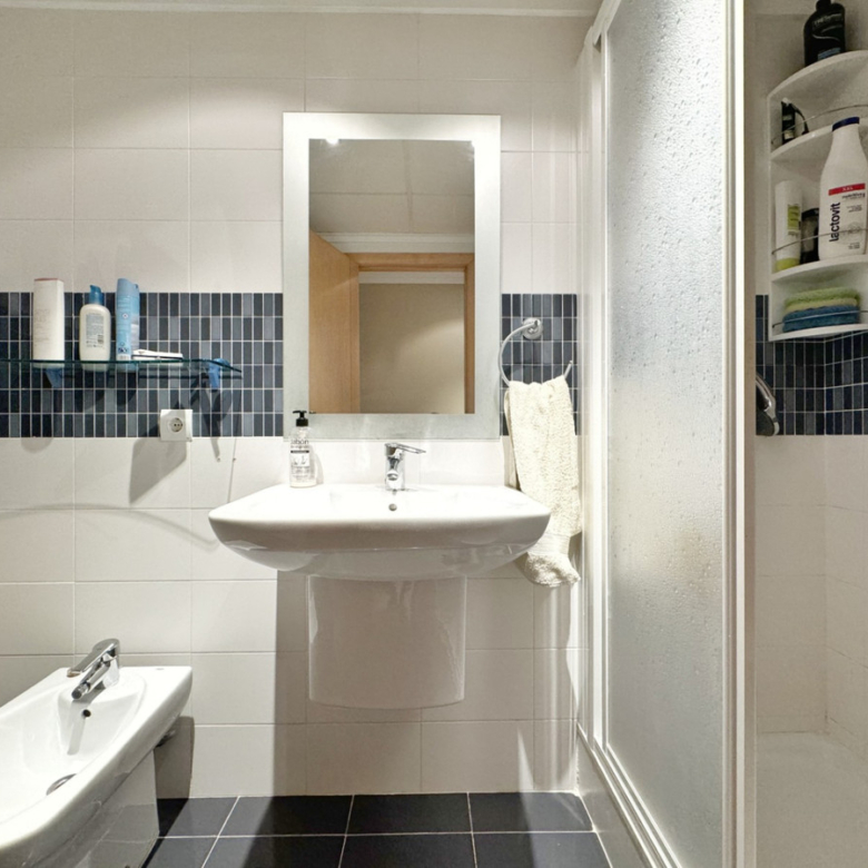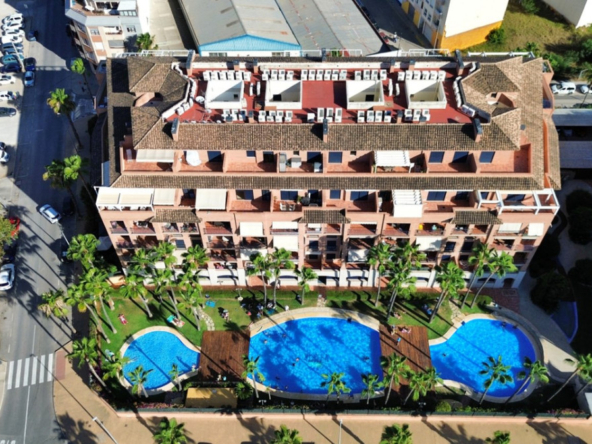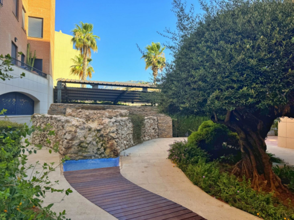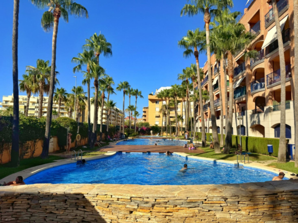 For added convenience, the flat includes an indoor parking space and lift. This fantastic development offers 3 swimming pools of varying depths, perfect for the whole family, and a spectacular waterfall with gardens that create a dream environment to relax and enjoy.