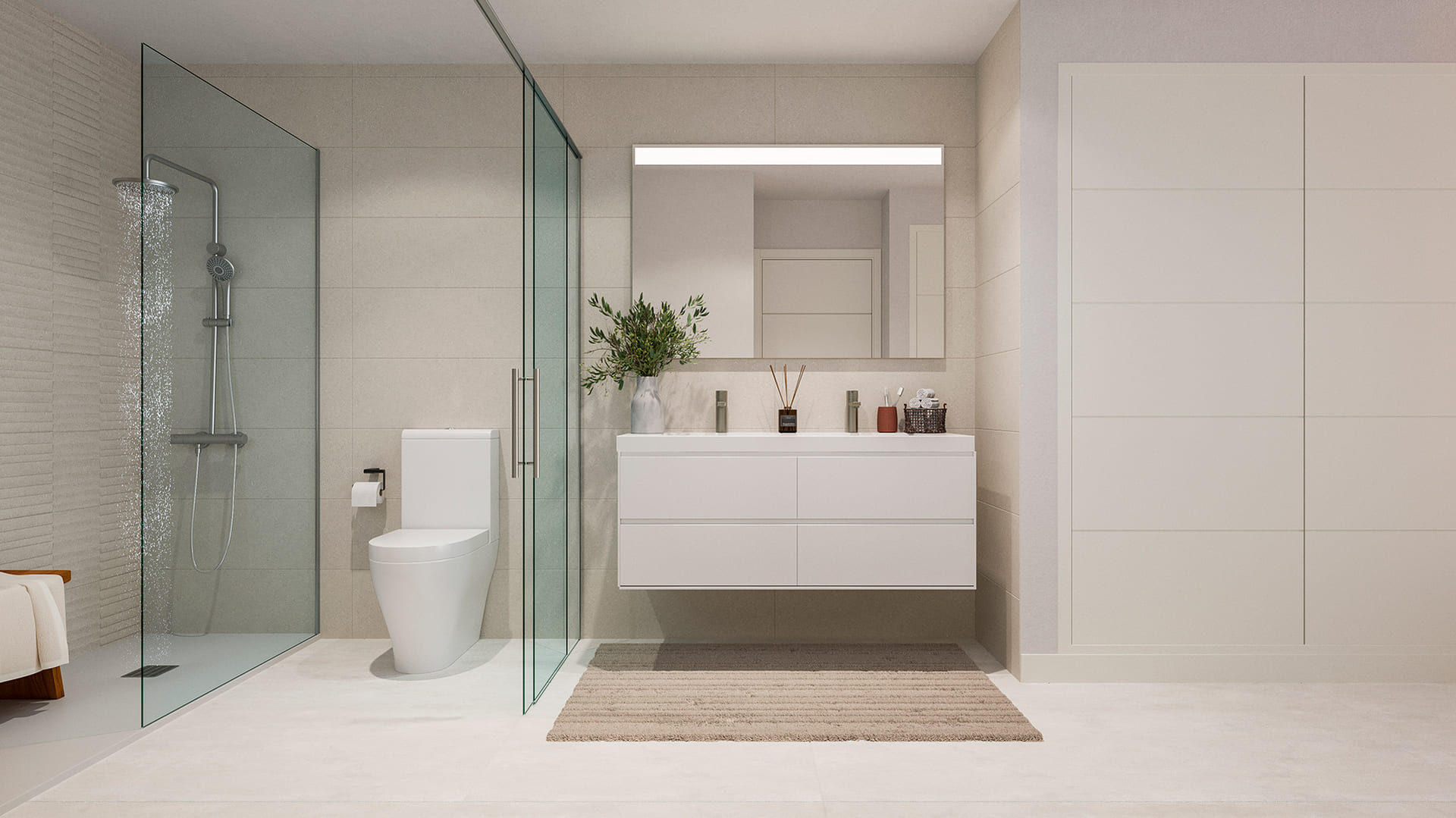 The interior of the homes is designed with a focus on quality and comfort. Porcelain tile floors add a touch of elegance and durability, while electric shutters and the video intercom provide an additional level of convenience and security. The kitchens are equipped with modern appliances, facilitating daily life and allowing residents to enjoy a functional and aesthetically pleasing space. Built-in wardrobes provide efficient storage, keeping spaces tidy and clutter-free. The layout of the homes, which includes options from 1 to 3 bedrooms and 1 or 2 bathrooms, is designed to maximize space usage and adapt to the needs of each resident, offering a cozy and practical home.