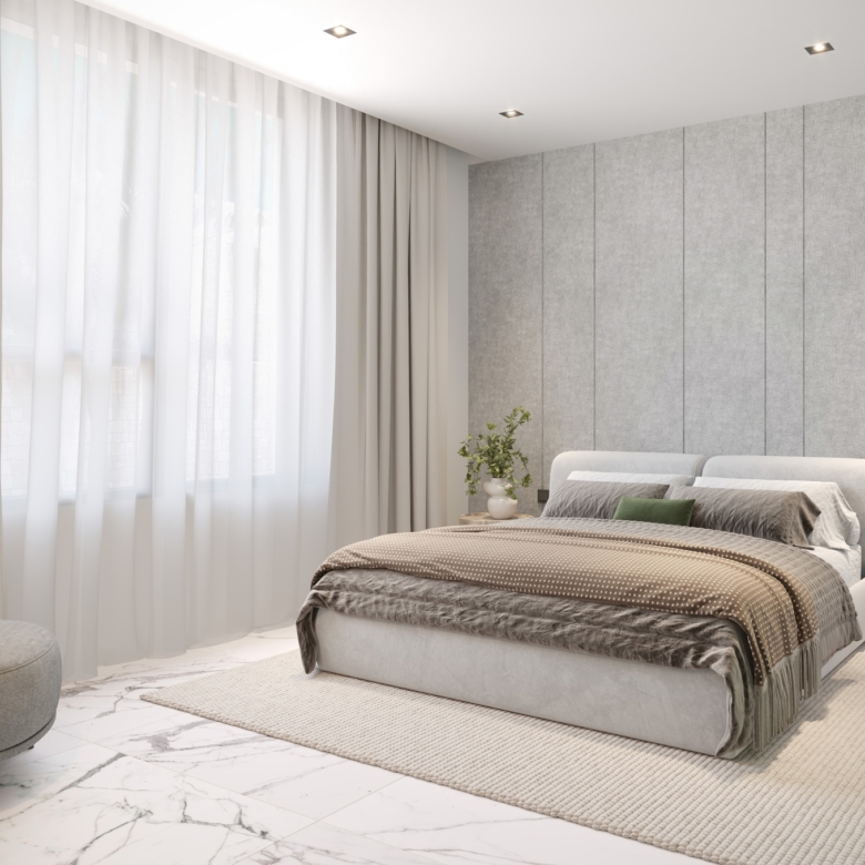 Inside, the homes offer a modern and functional design, with options of 3, 4, or 5 bedrooms and an equivalent number of bathrooms, catering to different family needs. The spaces are designed to maximize natural light and ventilation, creating a warm and bright environment. The inclusion of air conditioning and modern appliances ensures optimal comfort throughout the year. Built-in wardrobes provide efficient storage, keeping spaces tidy and clutter-free. The use of porcelain tiles on the floors adds a touch of elegance and facilitates maintenance.