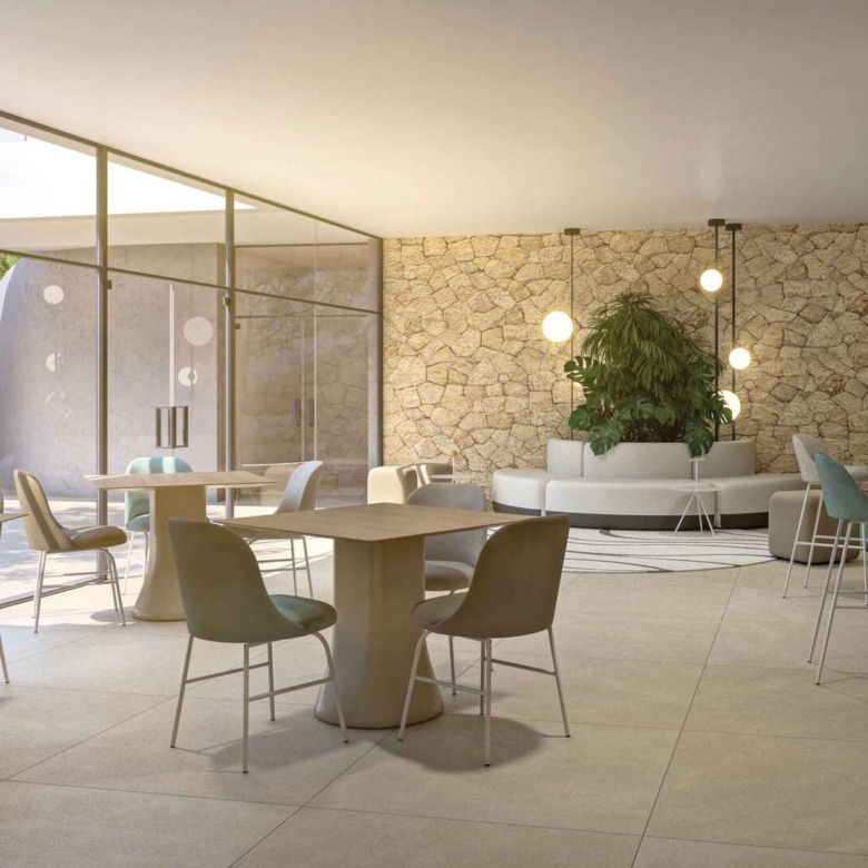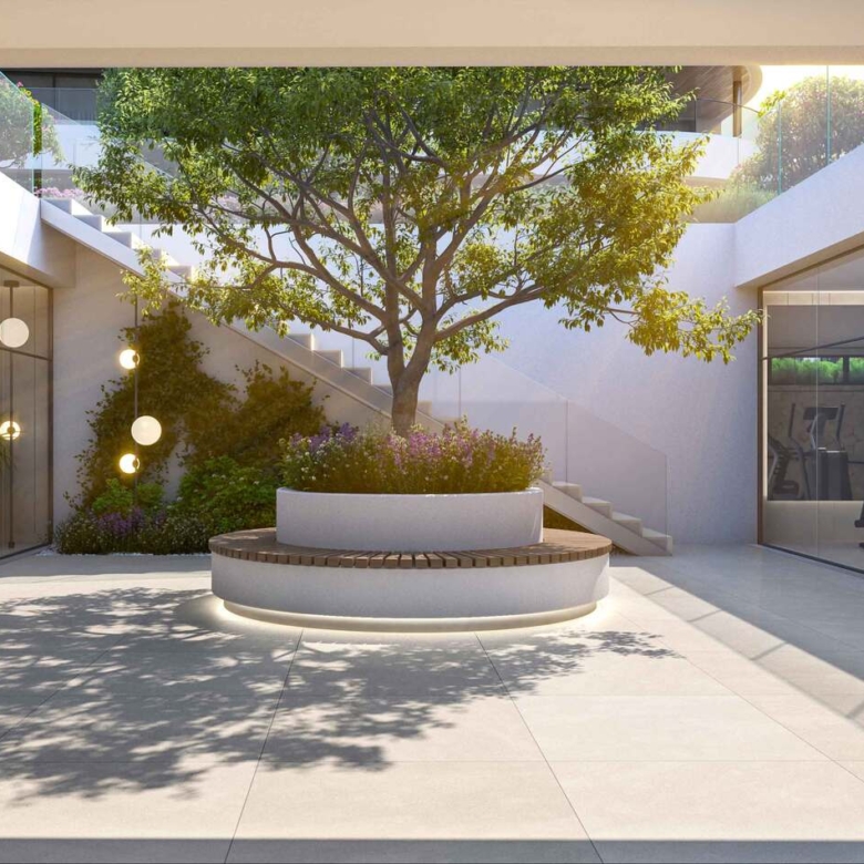 The exteriors of these properties are designed to maximize comfort and outdoor enjoyment. Each property may feature a private garden, perfect for relaxing or enjoying outdoor activities. Additionally, the spacious terraces offer additional leisure space, allowing enjoyment of the Mediterranean climate year-round. Some typologies include a solarium, ideal for sunbathing in the privacy of your home. The option of a private pool is available, providing a touch of luxury and exclusivity.