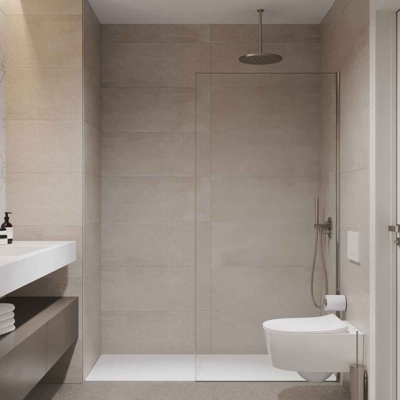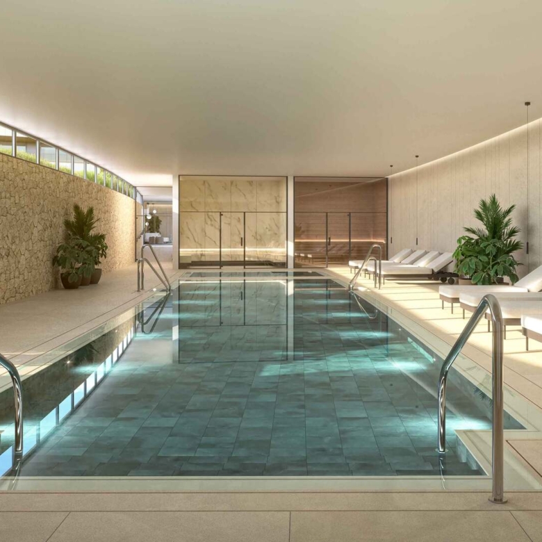 The interiors of the properties are designed with a focus on quality and comfort. Porcelain floors add a modern and elegant touch, while underfloor heating ensures a warm and inviting environment during the colder months. Climate control is guaranteed with air conditioning, and home automation facilitates the control of various home functions. Kitchens are equipped with high-end appliances, and built-in wardrobes offer efficient storage. Security is enhanced with a video intercom, providing peace of mind to residents.