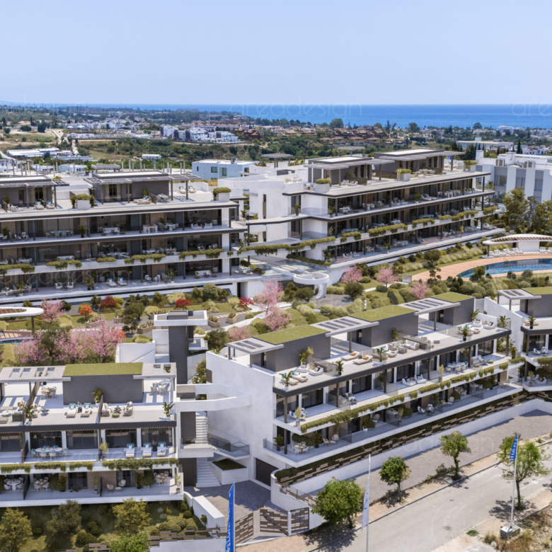 The exteriors of these homes have been designed to complement the natural surroundings of Estepona. Each property features a private terrace, perfect for enjoying the Mediterranean climate and sea views. Additionally, the penthouses include solariums, providing additional outdoor space for leisure and relaxation. The modern and elegant architecture harmoniously integrates with the landscape, offering a welcoming and sophisticated environment. The proximity to the sea, just 2 kilometers, allows for coastal walks and outdoor activities, making this location ideal for nature and sea lovers.